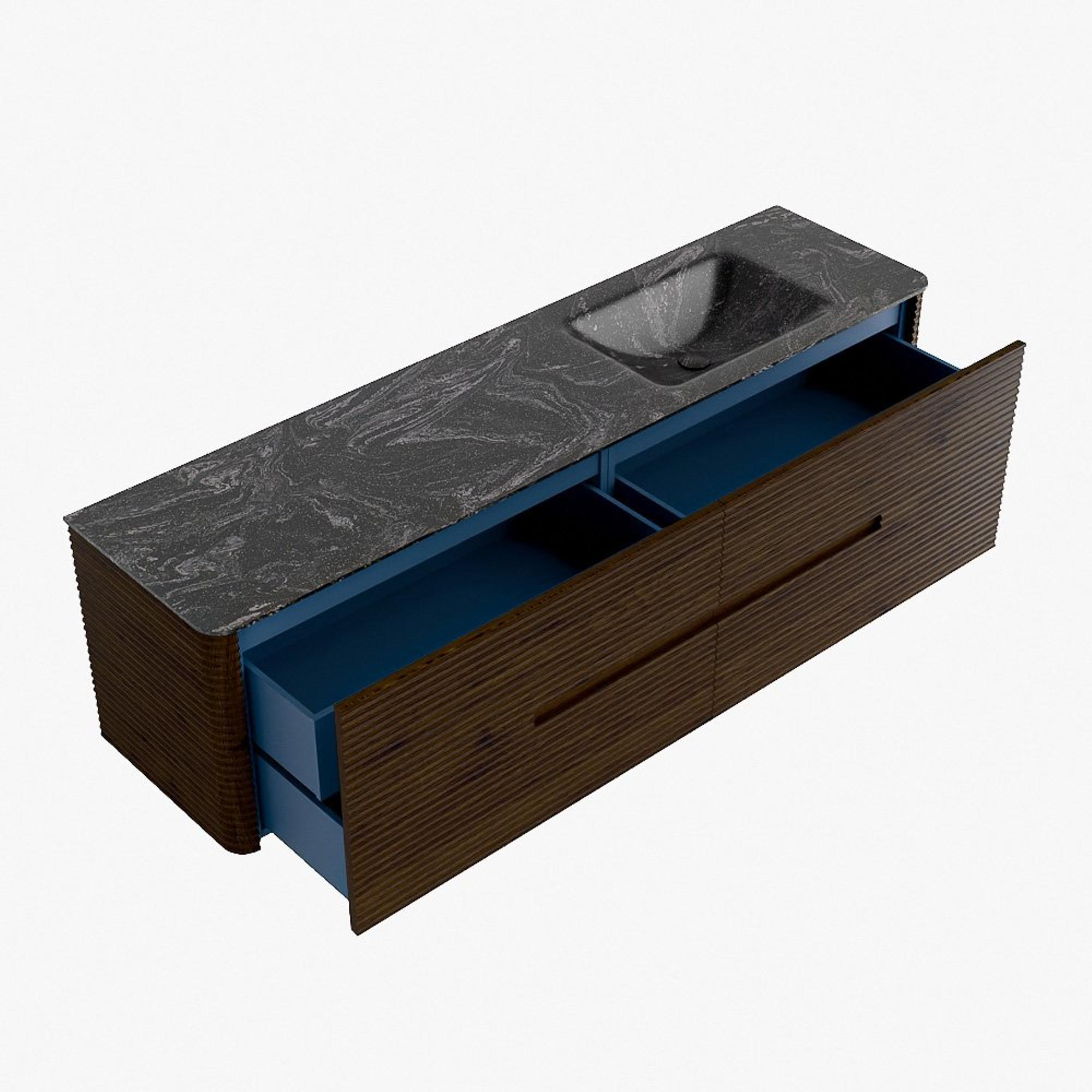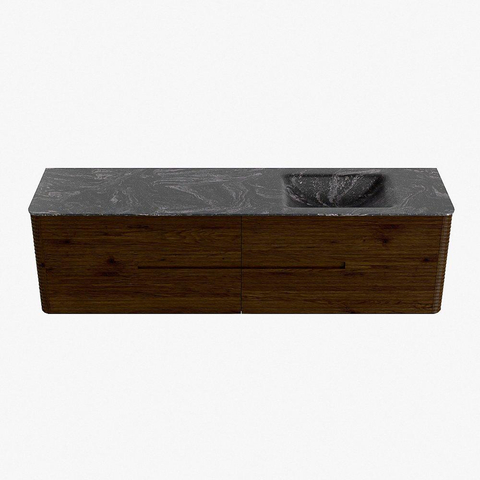 Mondiaz CIRO-DLUX Meuble de salle de bains - 180x45x50cm - Plan vasque Solid surface Lava - 1 lavabo à droite - sans trous de robinet - 4 tiroirs - Noyer