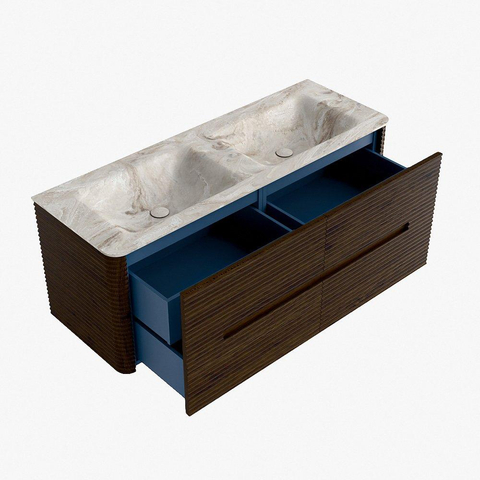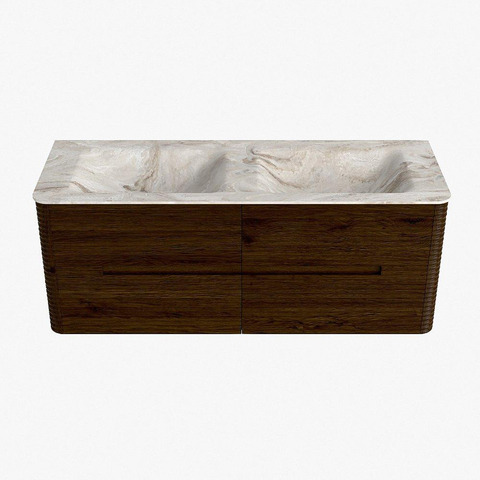 Mondiaz CIRO-DLUX Ensemble de meubles de salle de bains - 130x45x50cm - Vasque en solid surface Frappe - 2 bacs Double - sans trous de robinet - 4 tiroirs - Noyer