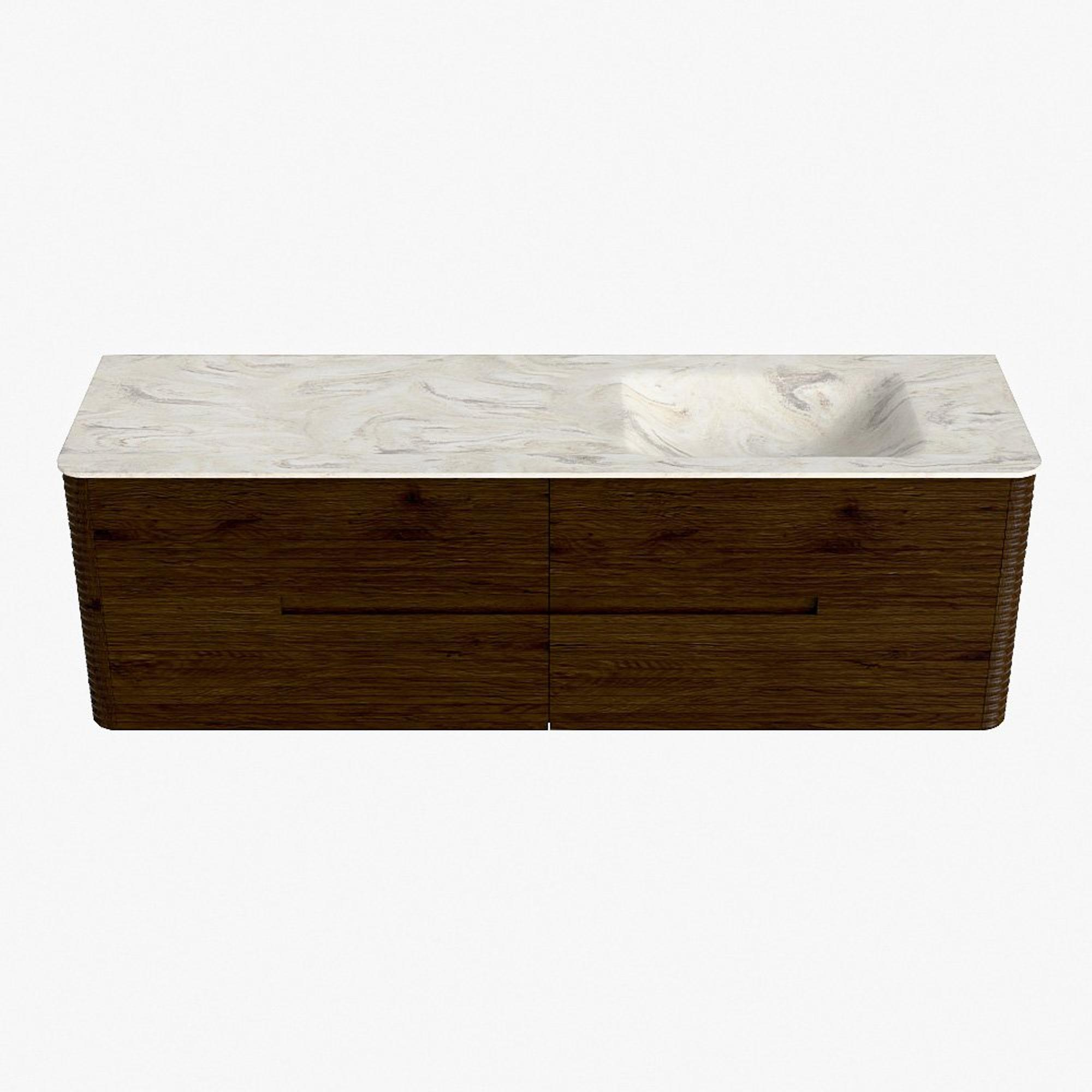 Mondiaz CIRO-DLUX Ensemble de meubles de salle de bains - 160x45x50cm - Plan-vasque Solid surface Ostra - 1 lavabo à droite - sans trous de robinetterie - 4 tiroirs - Noyer