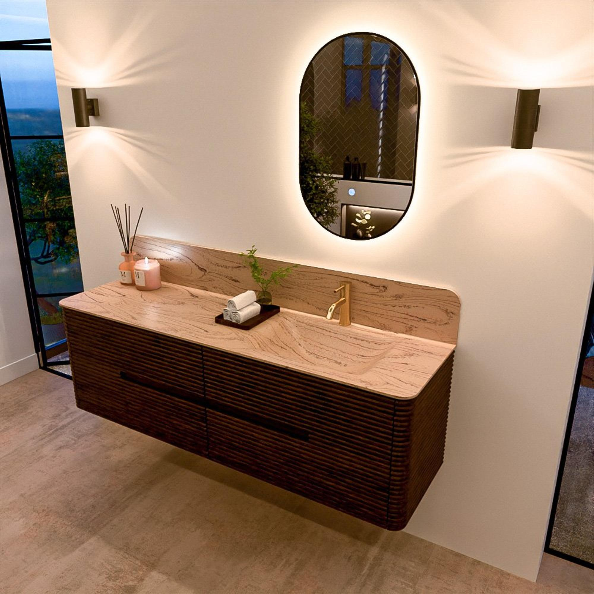 Le meuble de salle de bain CIRO-DLUX a été développé pour ceux qui choisissent un design moderne, des matériaux naturels et une fonctionnalité de haute qualité. Avec des dimensions allant de 70 cm à 190 cm, la gamme CIRO-DLUX s’intègre facilement aussi bien dans les salles de bain compactes que dans les grands espaces de design. Chaque meuble est une combinaison équilibrée d’esthétique, de savoir-faire et de qualité durable.