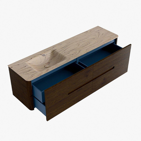 Mondiaz CIRO-DLUX meuble de salle de bains - 170x45x50cm - plan-vasque Solid surface Arena - 1 lavabo à gauche - 1 trou de robinet - 4 tiroirs - Noyer