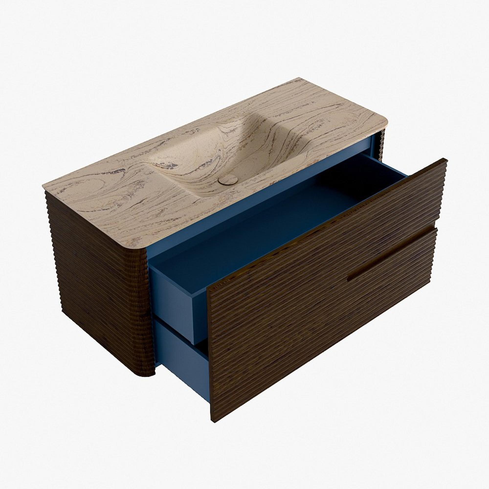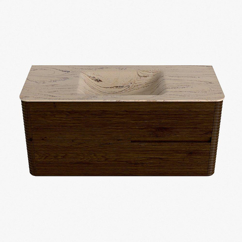 Mondiaz CIRO-DLUX Meuble de salle de bains - 110x45x50cm - Plan-vasque Solid surface Arena - 1 bassin Central - sans trous de robinet - 2 tiroirs - Noyer
