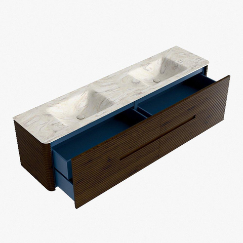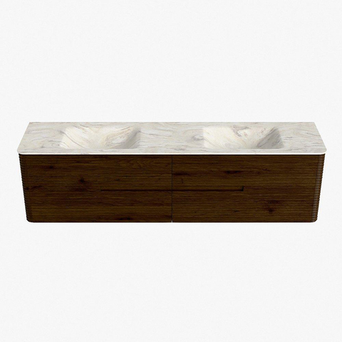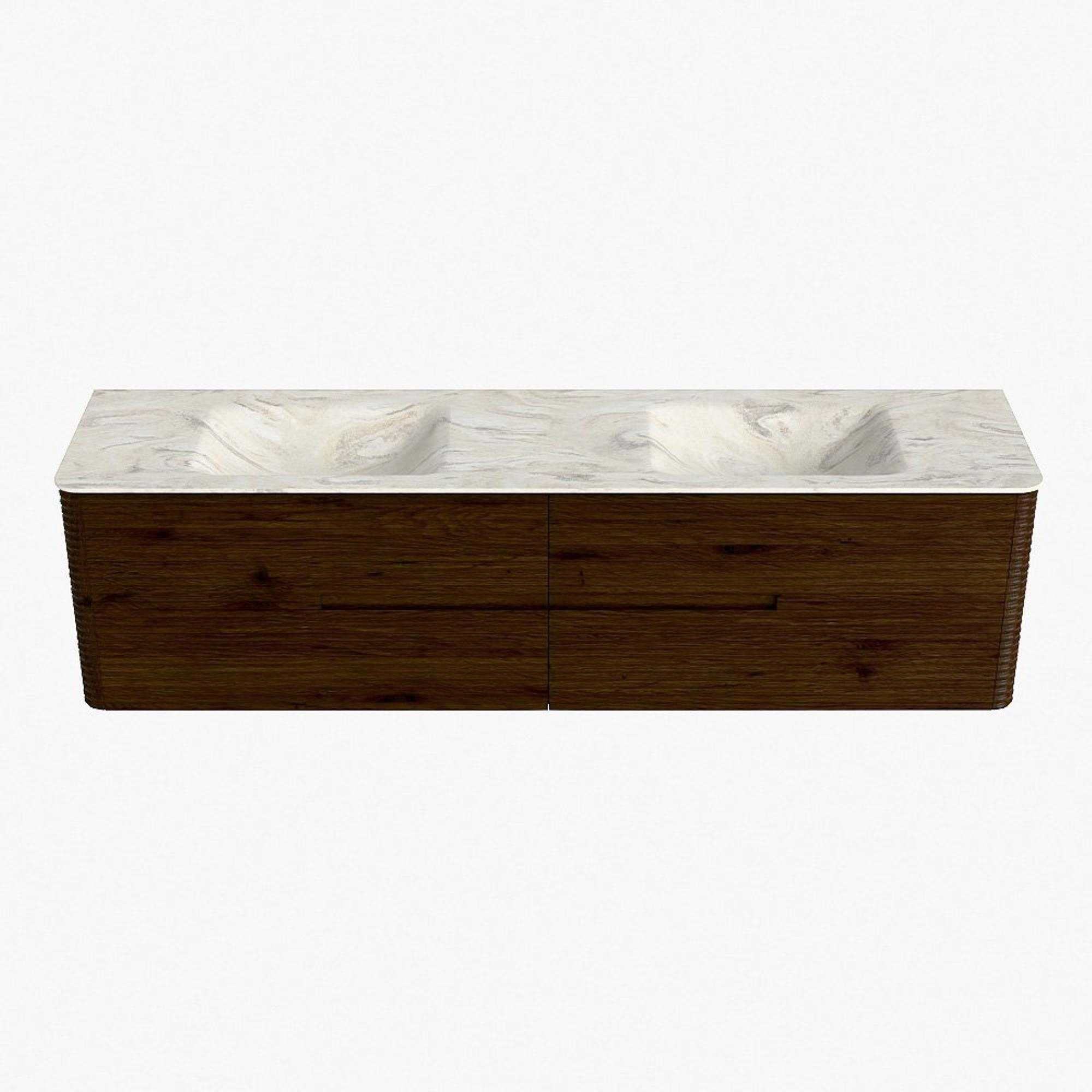 Mondiaz CIRO-DLUX Ensemble de meubles de salle de bains - 190x45x50cm - Plan-vasque solid surface Ostra - 2 vasques double - 2 trous de robinetterie - 4 tiroirs - Noyer