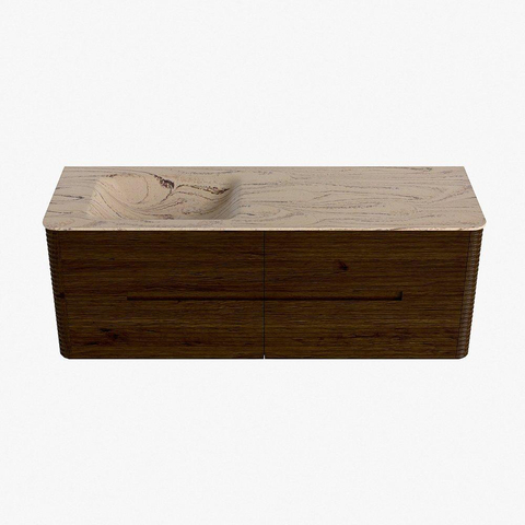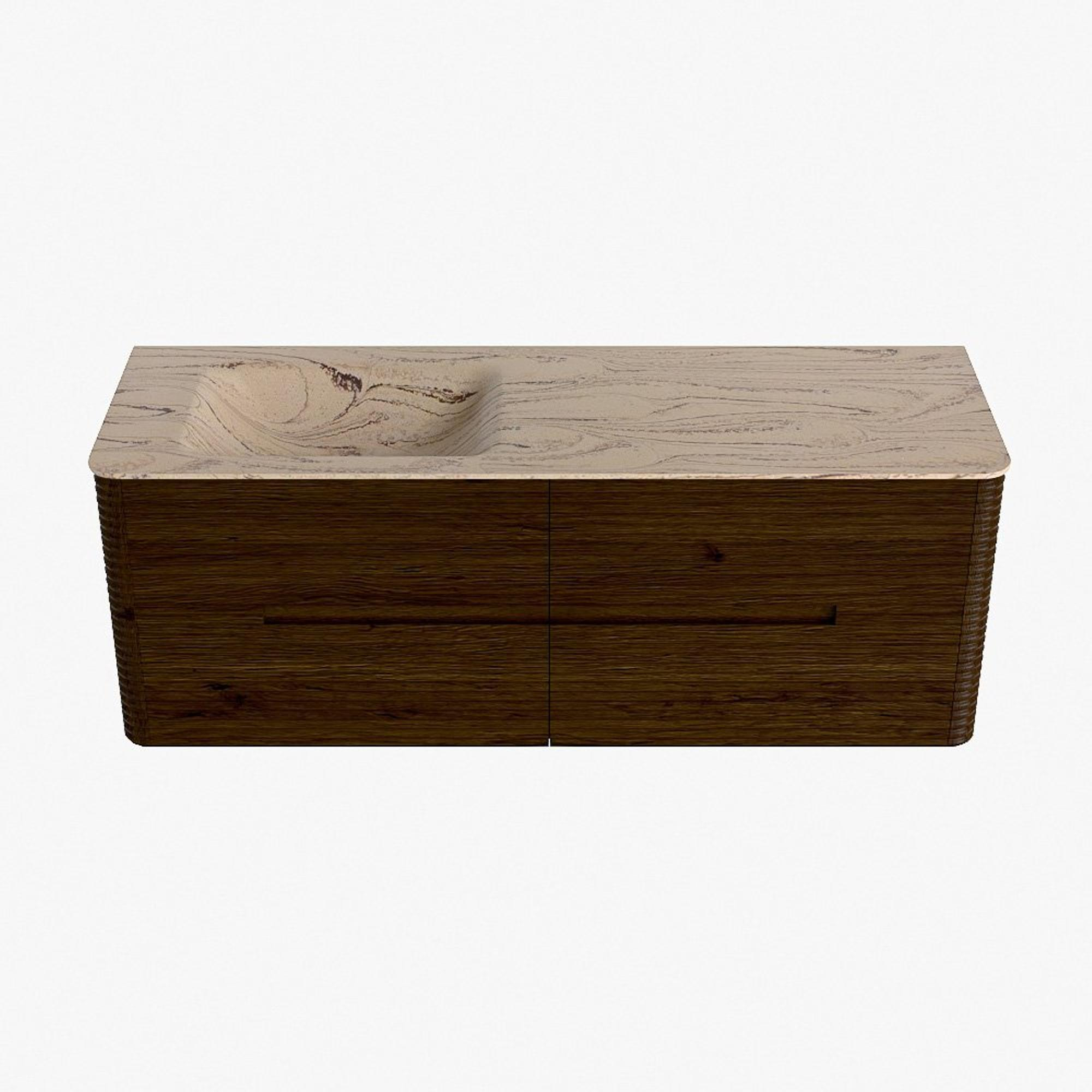 Mondiaz CIRO-DLUX Ensemble de meubles de salle de bains - 140x45x50cm - plan vasque solid surface Arena - 1 vasque à gauche - sans trous de robinet - 4 tiroirs - Noyer