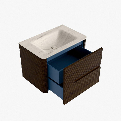 Mondiaz CIRO-DLUX Meuble de salle de bains ensemble - 70x45x50cm - Plan vasque solid surface Meli - 1 lavabo au milieu - 1 trou de robinet - 2 tiroirs - Noyer