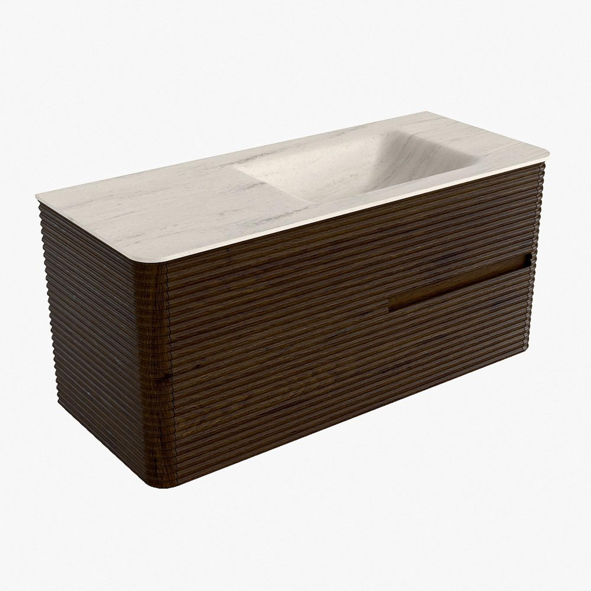 Mondiaz CIRO-DLUX Meuble de salle de bains - 110x45x50cm - Plan-vasque solid surface Meli - 1 bassin à droite - sans trous de robinet - 2 tiroirs - Noyer