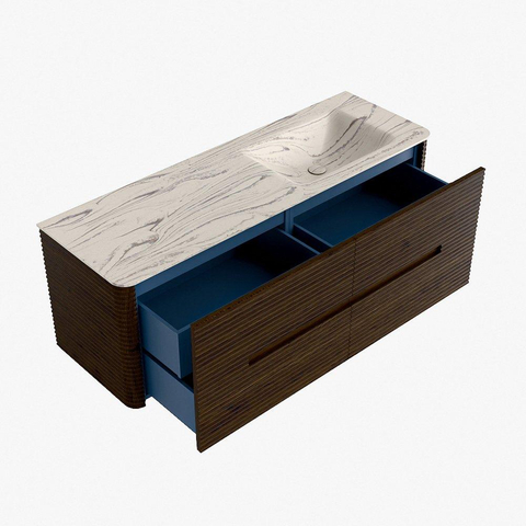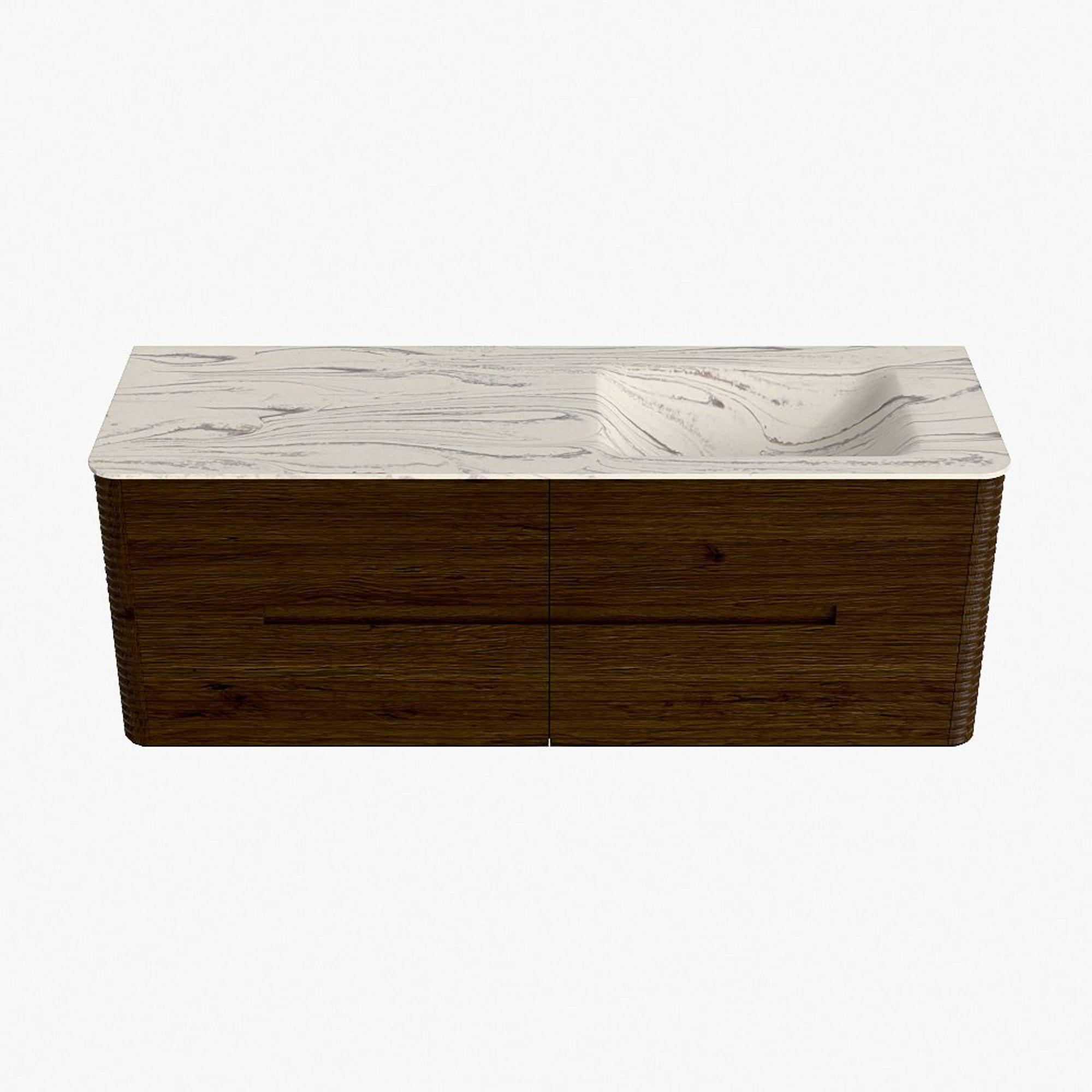 Mondiaz CIRO-DLUX Meuble de salle de bains - 140x45x50cm - Vasque en solid surface Nata - 1 lavabo à droite - 1 trou de robinet - 4 tiroirs - Noyer
