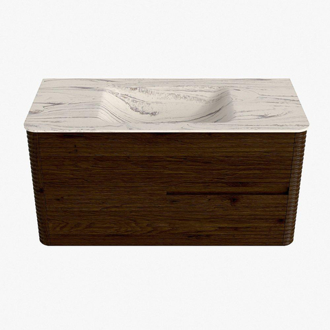 Mondiaz CIRO-DLUX Meuble de salle de bains - 100x45x50cm - Plan-vasque solid surface Nata - 1 vasque au milieu - sans trous de robinetterie - 2 tiroirs - Noyer