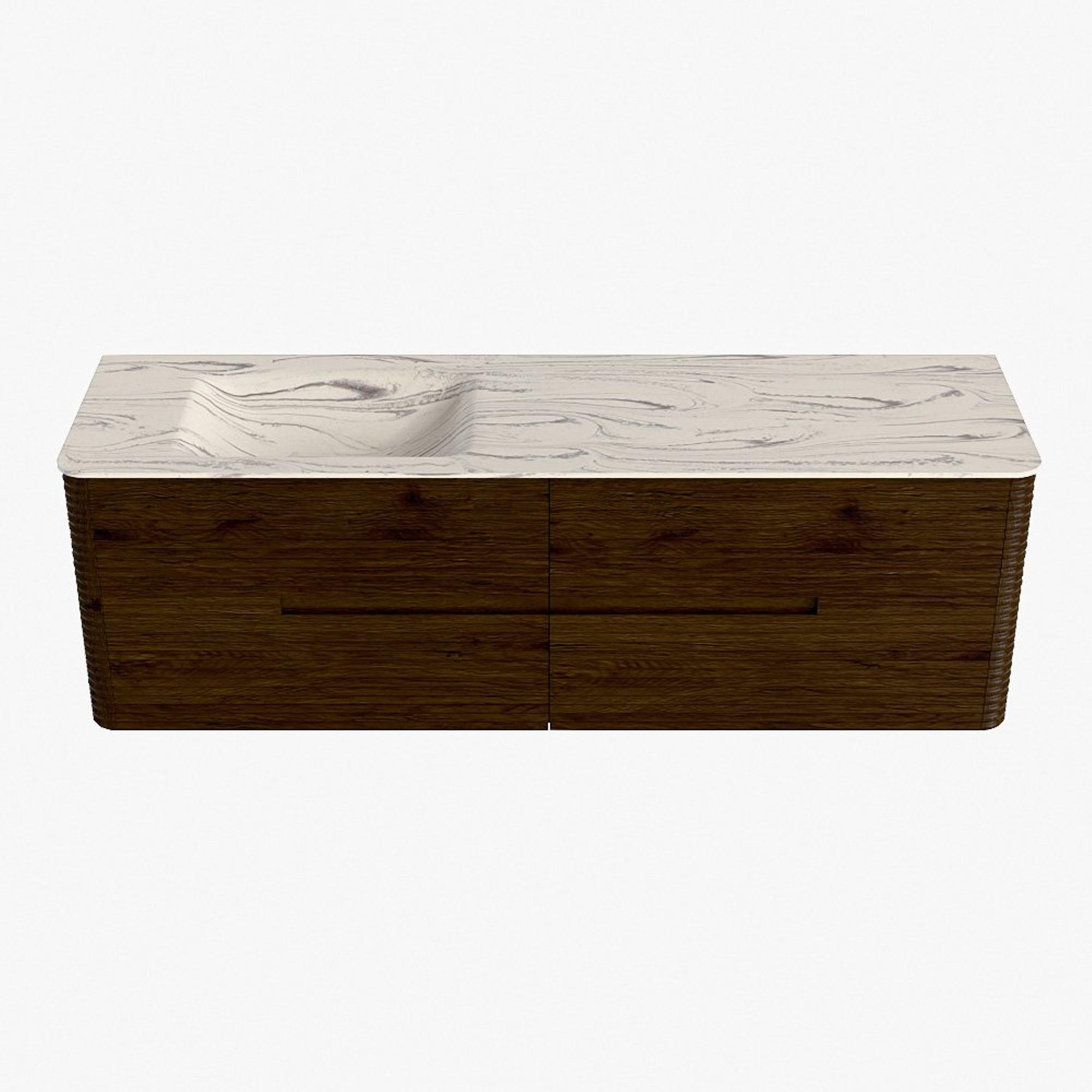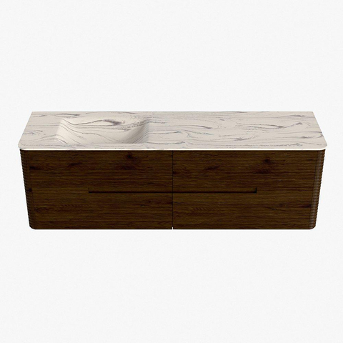 Mondiaz CIRO-DLUX Meuble de salle de bains - 160x45x50cm - Plan vasque solid surface Nata - 1 vasque à gauche - 1 trou de robinet - 4 tiroirs - Noyer