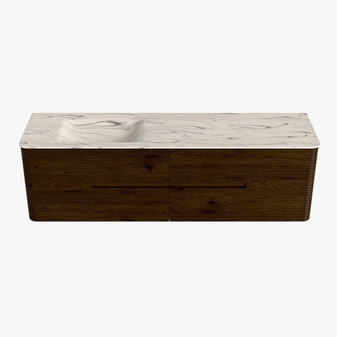 Mondiaz CIRO-DLUX Ensemble de meubles de salle de bains - 170x45x50cm - Plan-vasque solid surface Nata - 1 lavabo à gauche - 1 trou de robinet - 4 tiroirs - Noyer