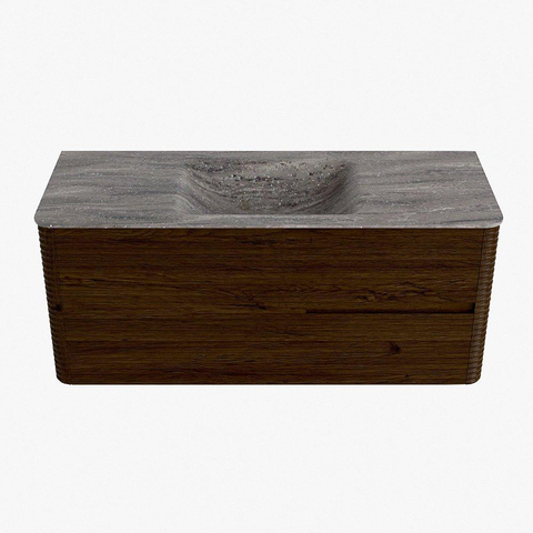 Mondiaz CIRO-DLUX Meuble de salle de bains - 120x45x50cm - Vasque solid surface Oza - 1 lavabo au milieu - 1 trou de robinet - 2 tiroirs - Noyer