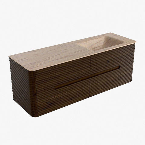 Mondiaz CIRO-DLUX Meuble de salle de bains - 140x45x50cm - Plan vasque Solid Surface Saba - 1 vasque à droite - sans trous de robinetterie - 4 tiroirs - Noyer