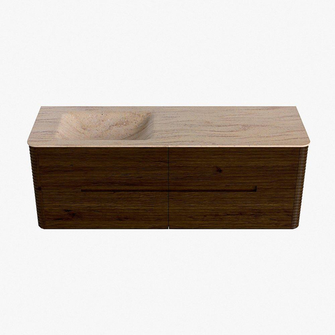 Mondiaz CIRO-DLUX Ensemble de meubles de salle de bains - 140x45x50cm - lavabo Solid surface Saba - 1 vasque à gauche - sans trous de robinet - 4 tiroirs - Noyer