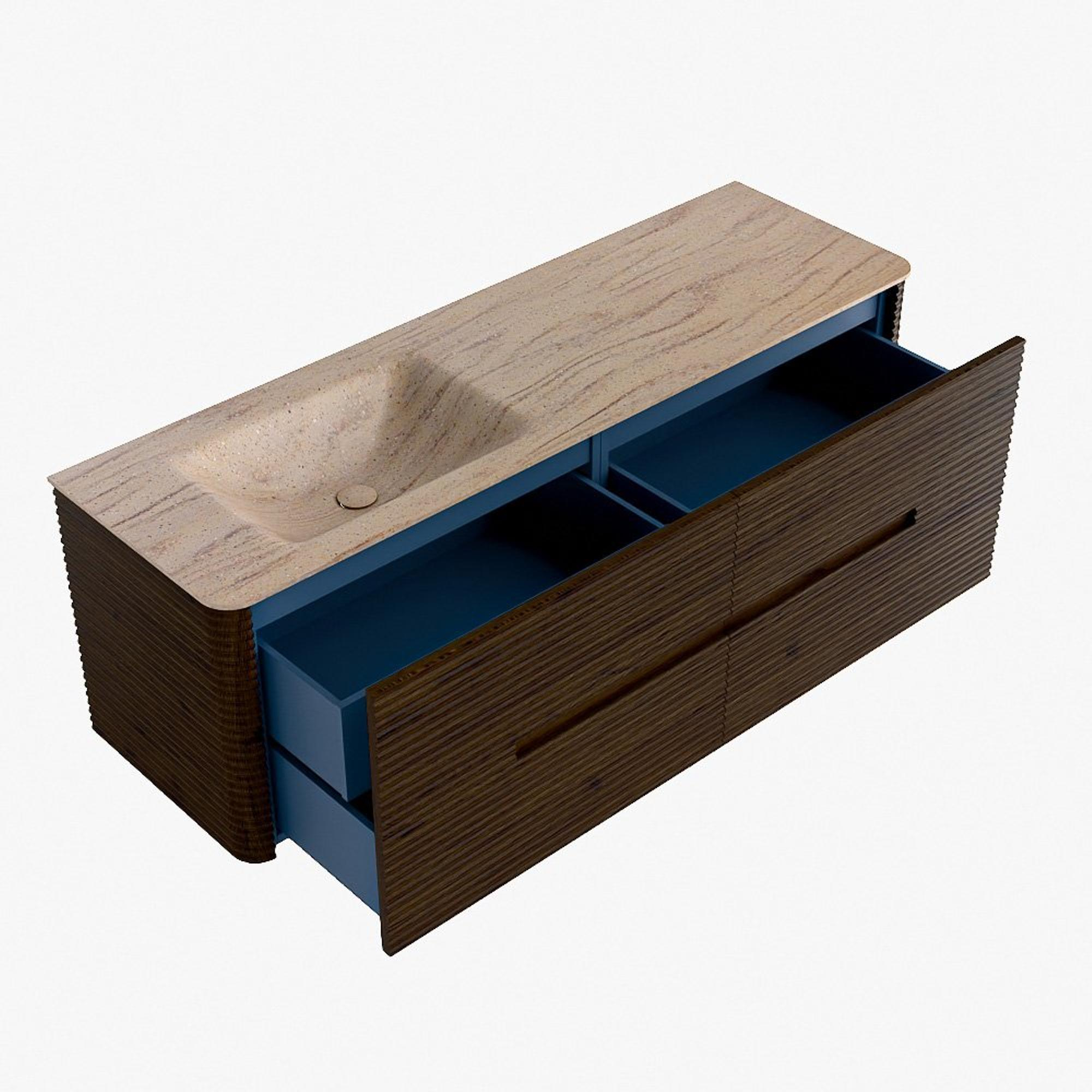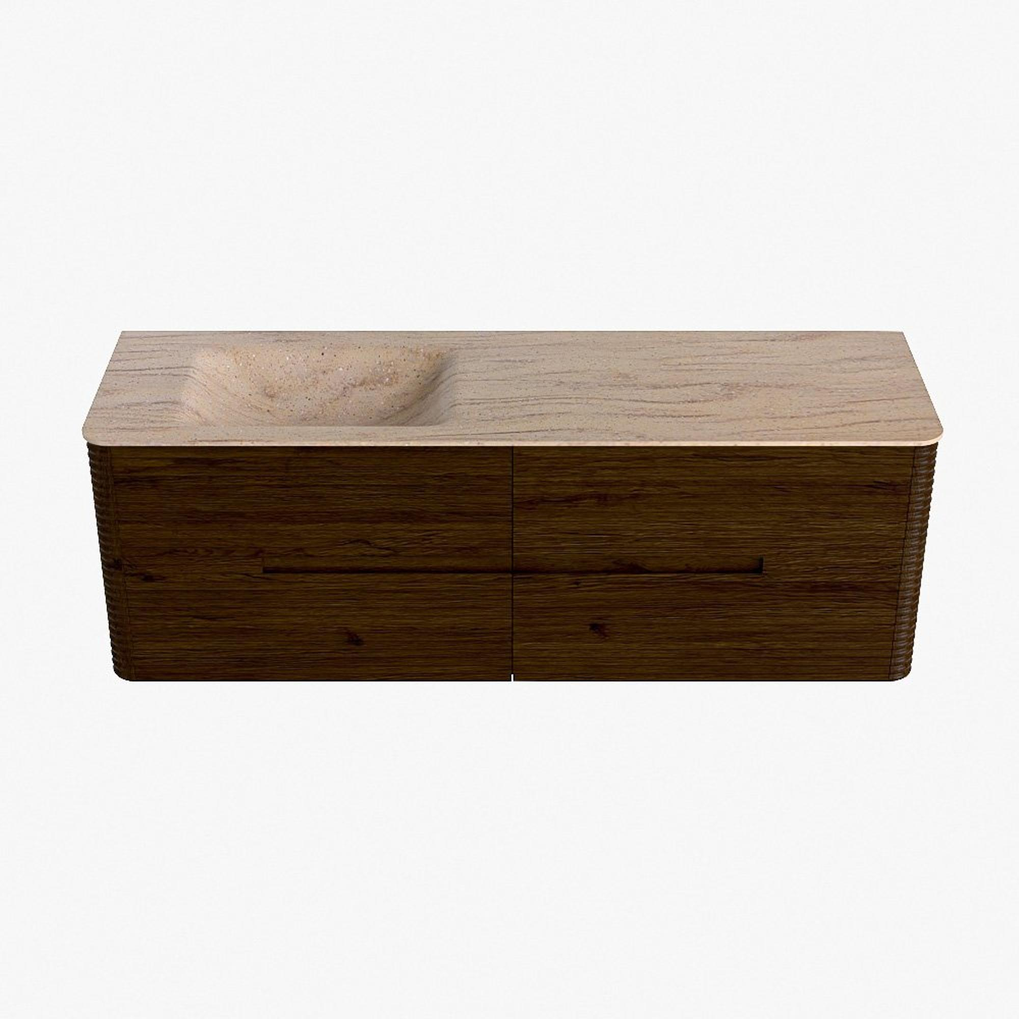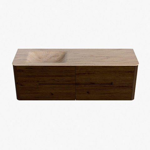 Mondiaz CIRO-DLUX Meuble de salle de bains - 150x45x50cm - Plan vasque Solid surface Saba - 1 lavabo à gauche - sans trous de robinetterie - 4 tiroirs - Noyer