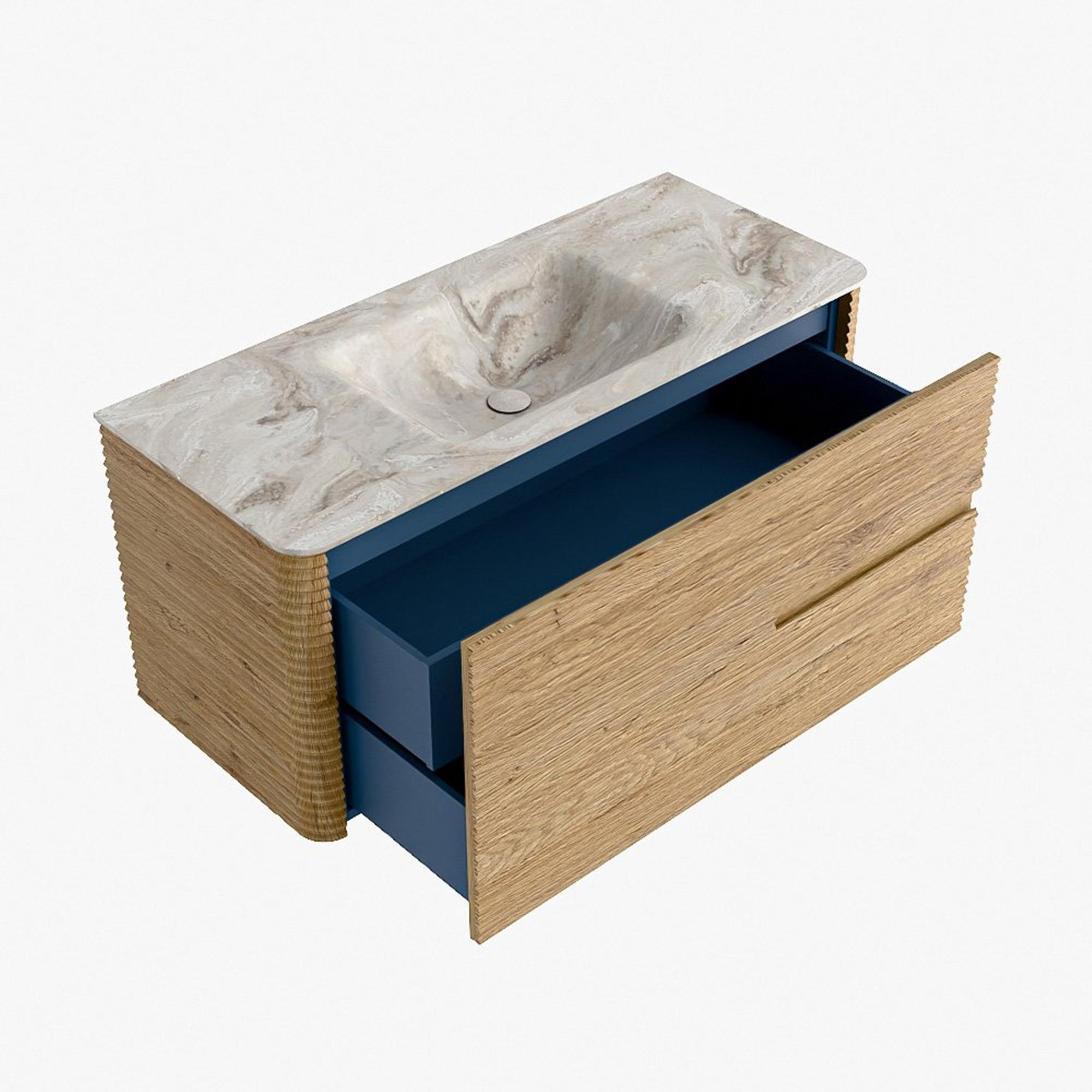 Mondiaz CIRO-DLUX Ensemble de meubles de salle de bains - 110x45x50cm - Lavabo solid surface Frappe - 1 vasque au milieu - 1 trou de robinet - 2 tiroirs - Chêne