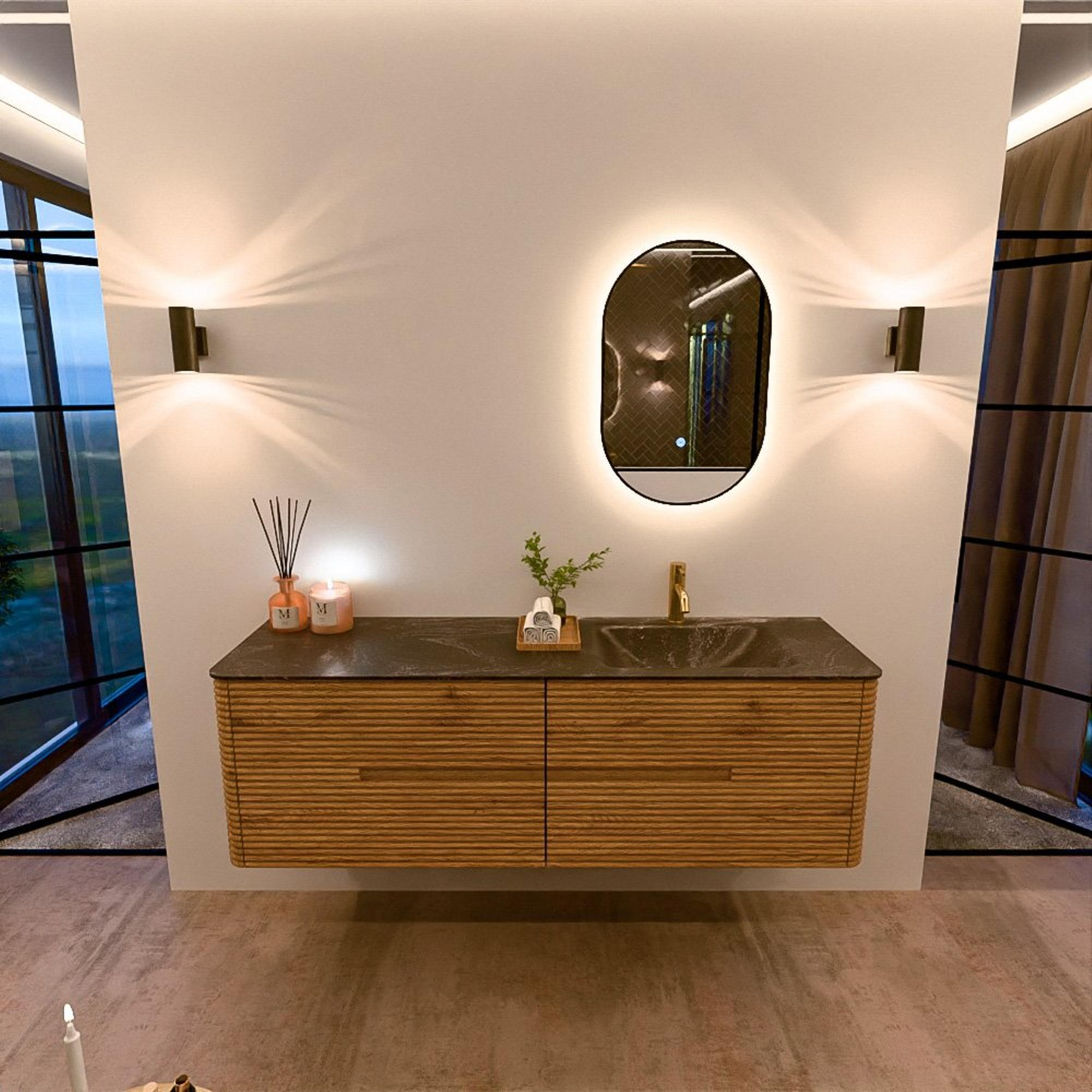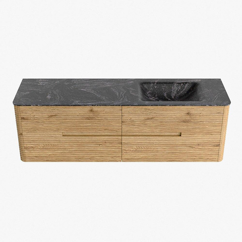 Mondiaz CIRO-DLUX Meuble de salle de bains - 160x45x50cm - Lavabo en solid surface Lava - 1 vasque à droite - 1 trou de robinet - 4 tiroirs - Chêne