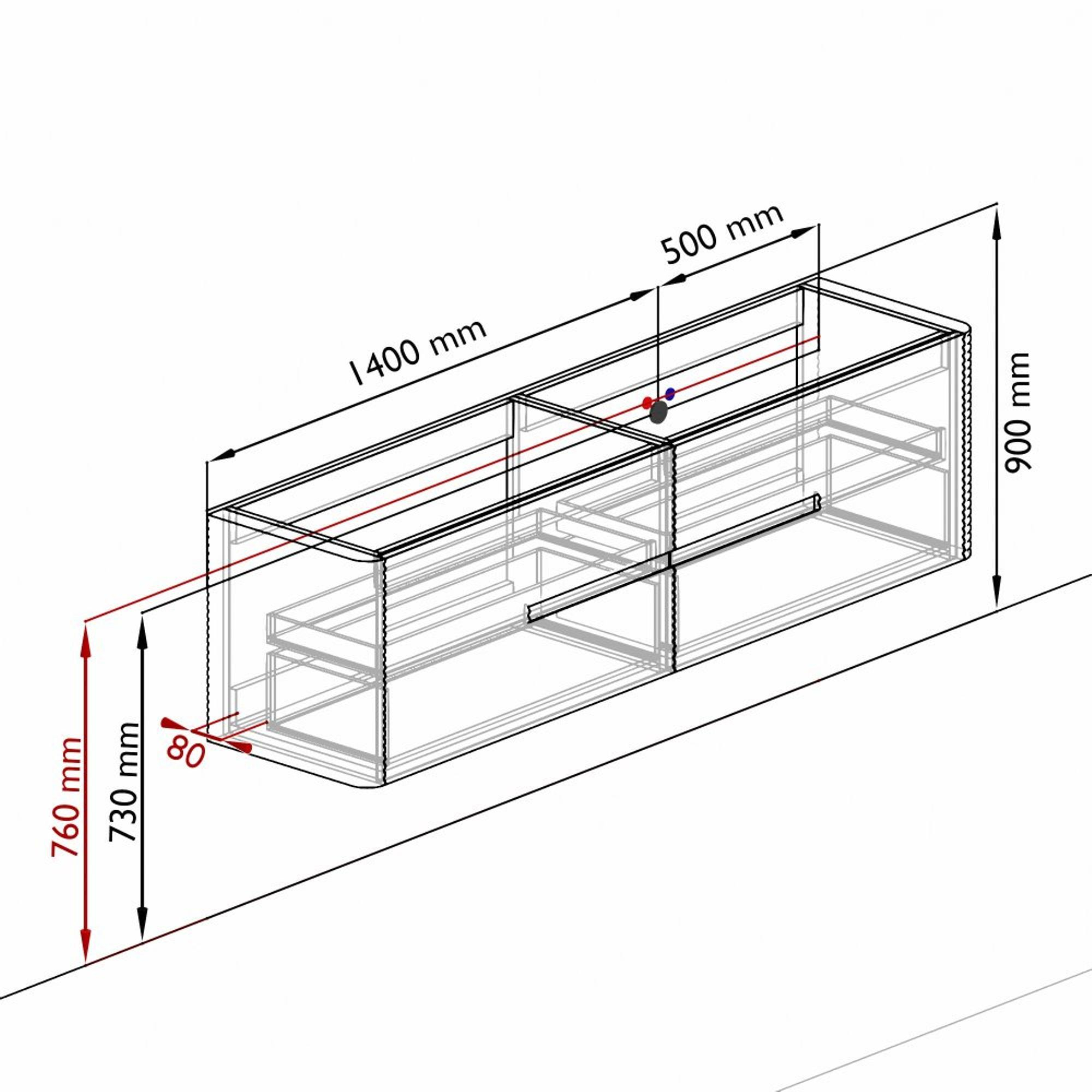 - Largeur du meuble bas: 190cm