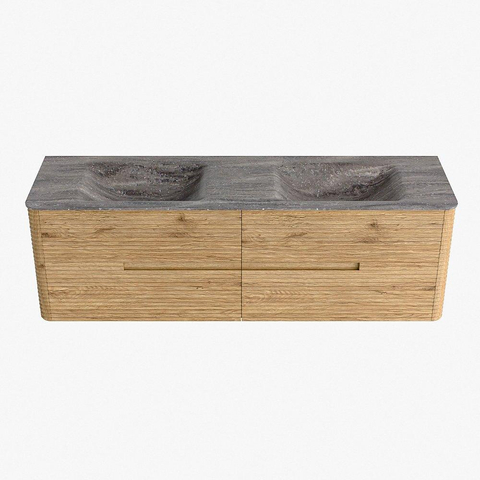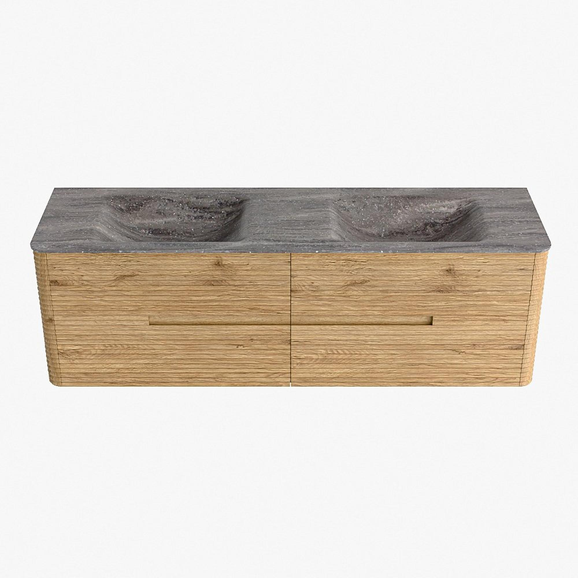Mondiaz CIRO-DLUX Ensemble de meubles de salle de bains - 160x45x50cm - Plan vasque solid surface Oza - 2 lavabos double - 2 trous de robinetterie - 4 tiroirs - Chêne