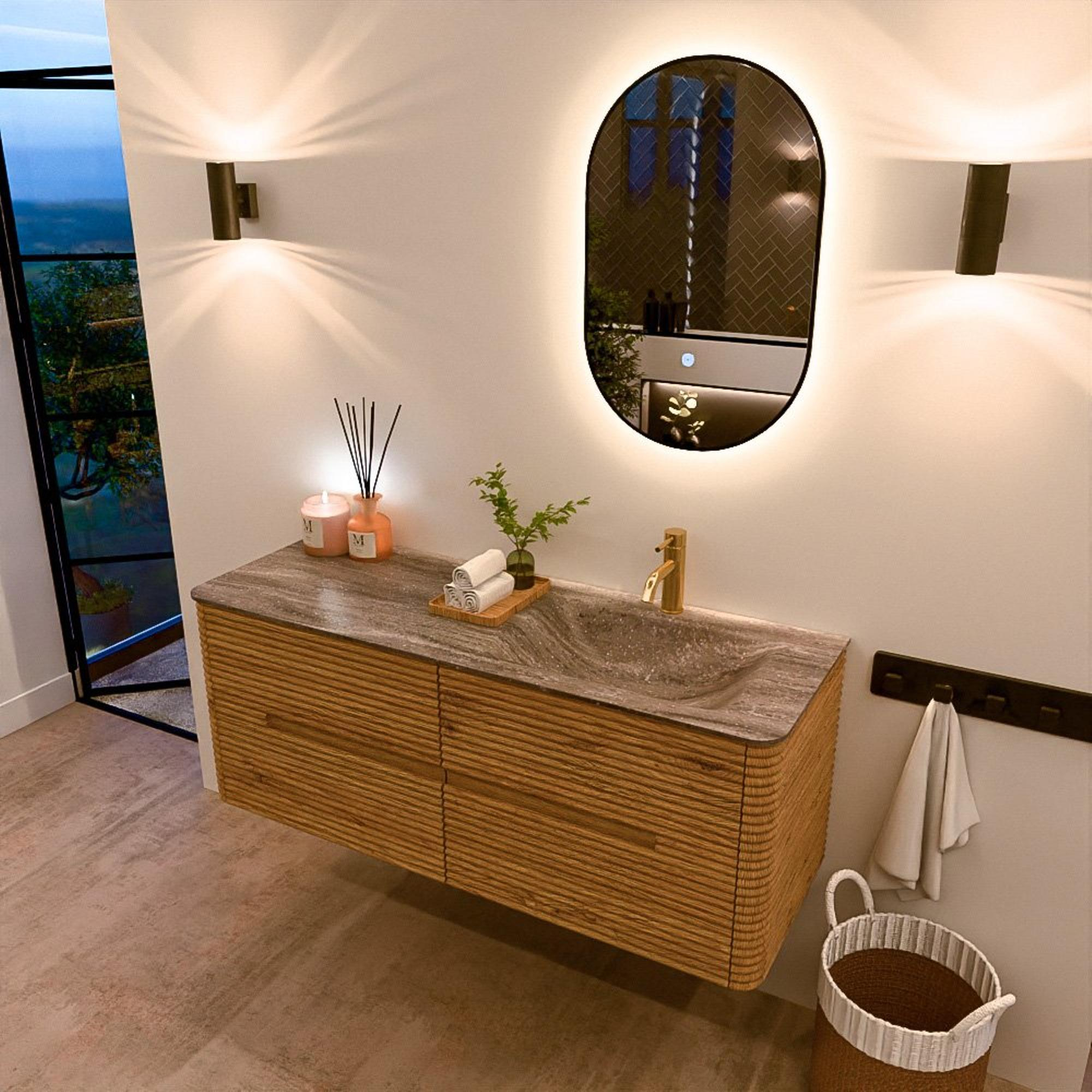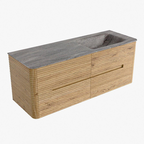 Mondiaz CIRO-DLUX Ensemble de meubles de salle de bains - 130x45x50cm - Plan-vasque Solid Surface Oza - 1 lavabo à droite - 1 trou de robinet - 4 tiroirs - Chêne
