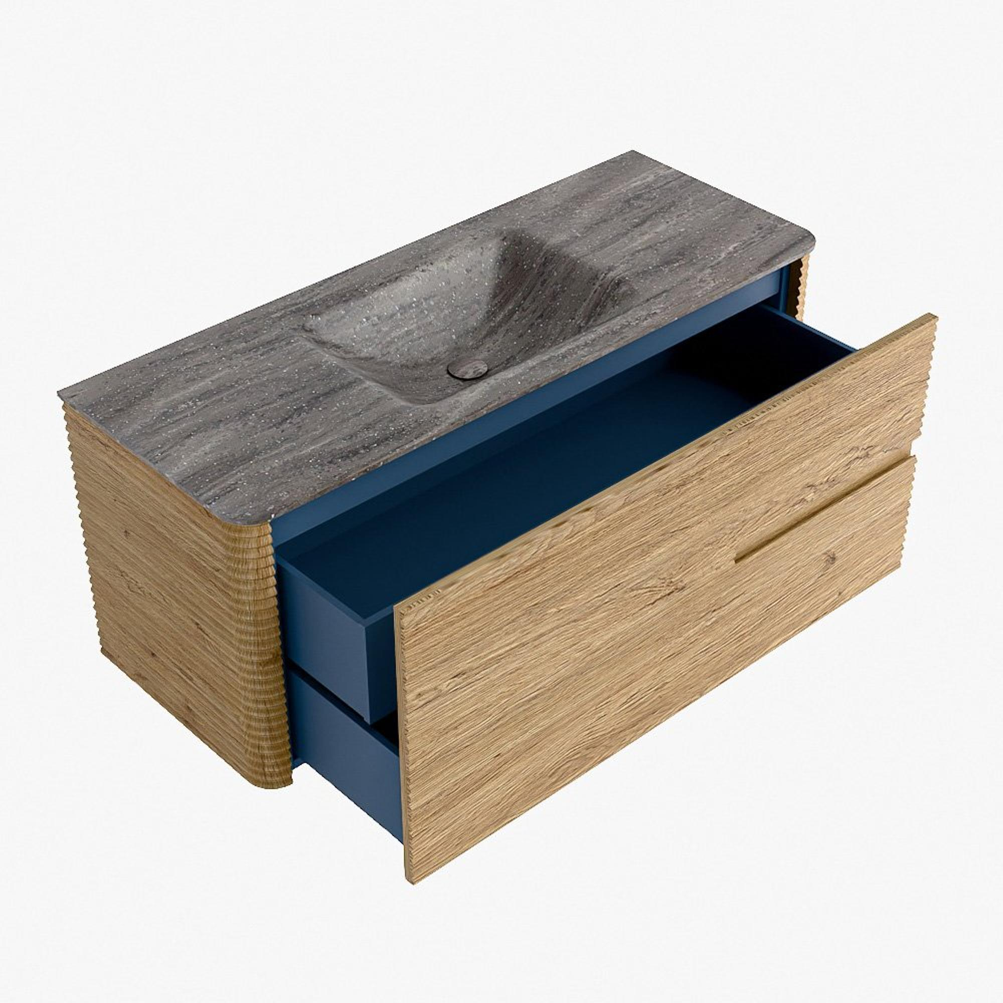Mondiaz CIRO-DLUX Ensemble de meubles de salle de bains - 120x45x50cm - Vasque en solid surface Oza - 1 bassin au centre - 1 trou de robinet - 2 tiroirs - Chêne