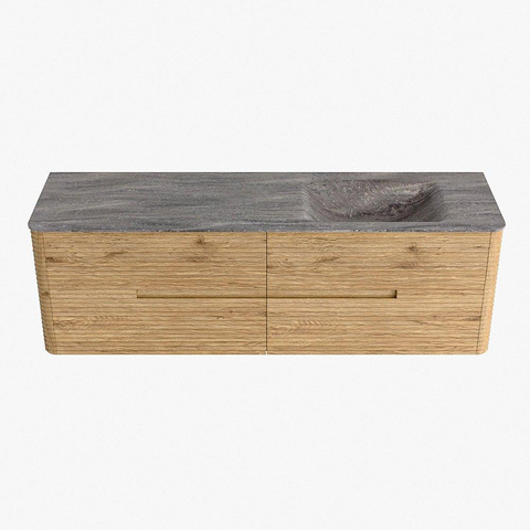 Mondiaz CIRO-DLUX Ensemble de meubles de salle de bains - 160x45x50cm - lavabo Solid surface Oza - 1 vasque à droite - sans trous de robinet - 4 tiroirs - Chêne