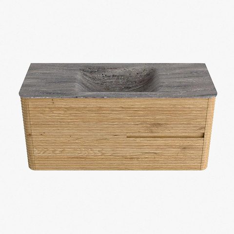 Mondiaz CIRO-DLUX Meuble de salle de bains - 110x45x50cm - Vasque en solid surface Oza - 1 vasque centrale - sans trous de robinetterie - 2 tiroirs - Chêne