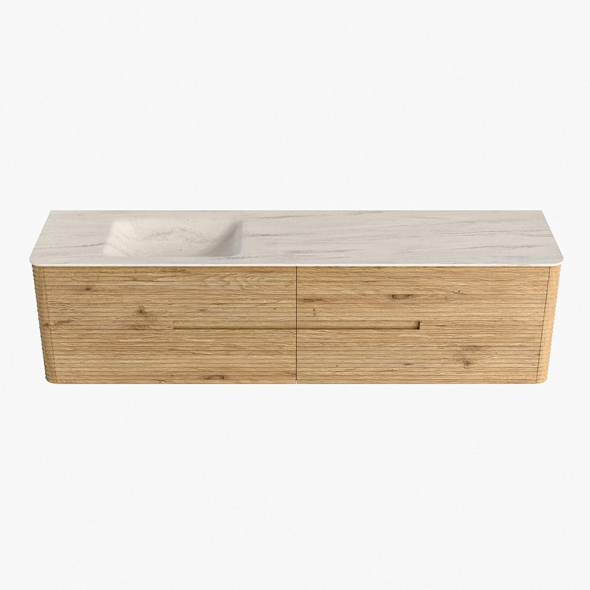 Mondiaz CIRO-DLUX Ensemble de meubles de salle de bains - 190x45x50cm - Plan-vasque en solid surface Meli - 1 bassin à gauche - 1 trou de robinet - 4 tiroirs - Chêne
