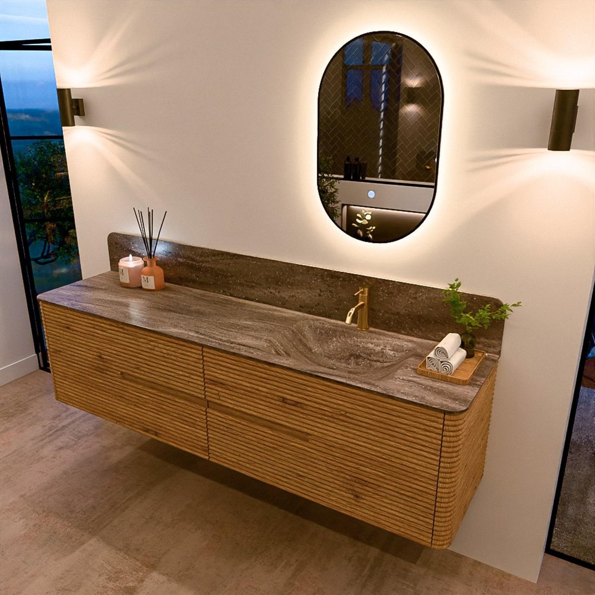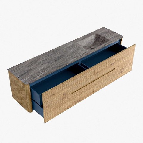 Mondiaz CIRO-DLUX Meuble de salle de bains - 190x45x50cm - Plan-vasque en solid surface Oza - 1 lavabo à droite - 1 trou de robinetterie - 4 tiroirs - Chêne
