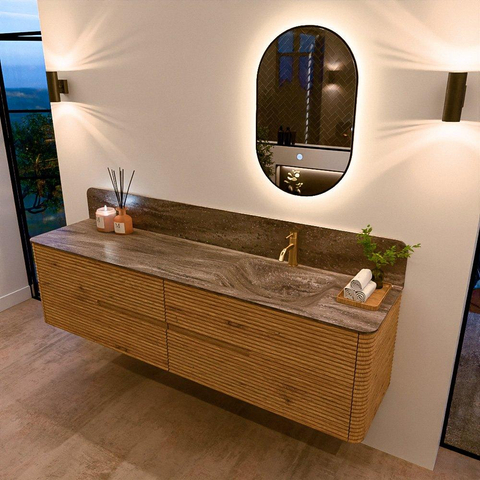 Le meuble de salle de bain CIRO-DLUX a été développé pour ceux qui choisissent un design moderne, des matériaux naturels et une fonctionnalité de haute qualité. Avec des dimensions allant de 70 cm à 190 cm, la gamme CIRO-DLUX s’intègre facilement aussi bien dans les salles de bain compactes que dans les grands espaces de design. Chaque meuble est une combinaison équilibrée d’esthétique, de savoir-faire et de qualité durable.