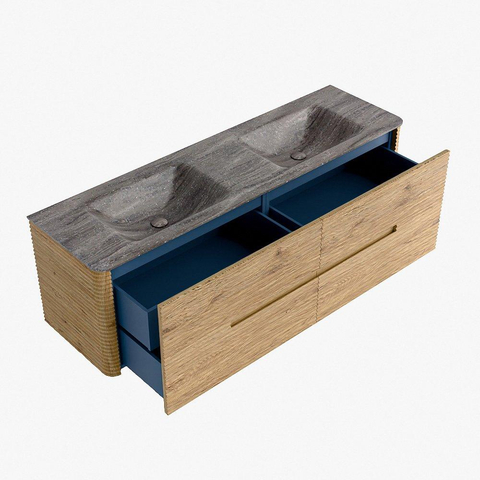 Mondiaz CIRO-DLUX Ensemble de meubles de salle de bains - 160x45x50cm - plan-vasque solid surface Oza - double vasque - sans trous de robinet - 4 tiroirs - chêne