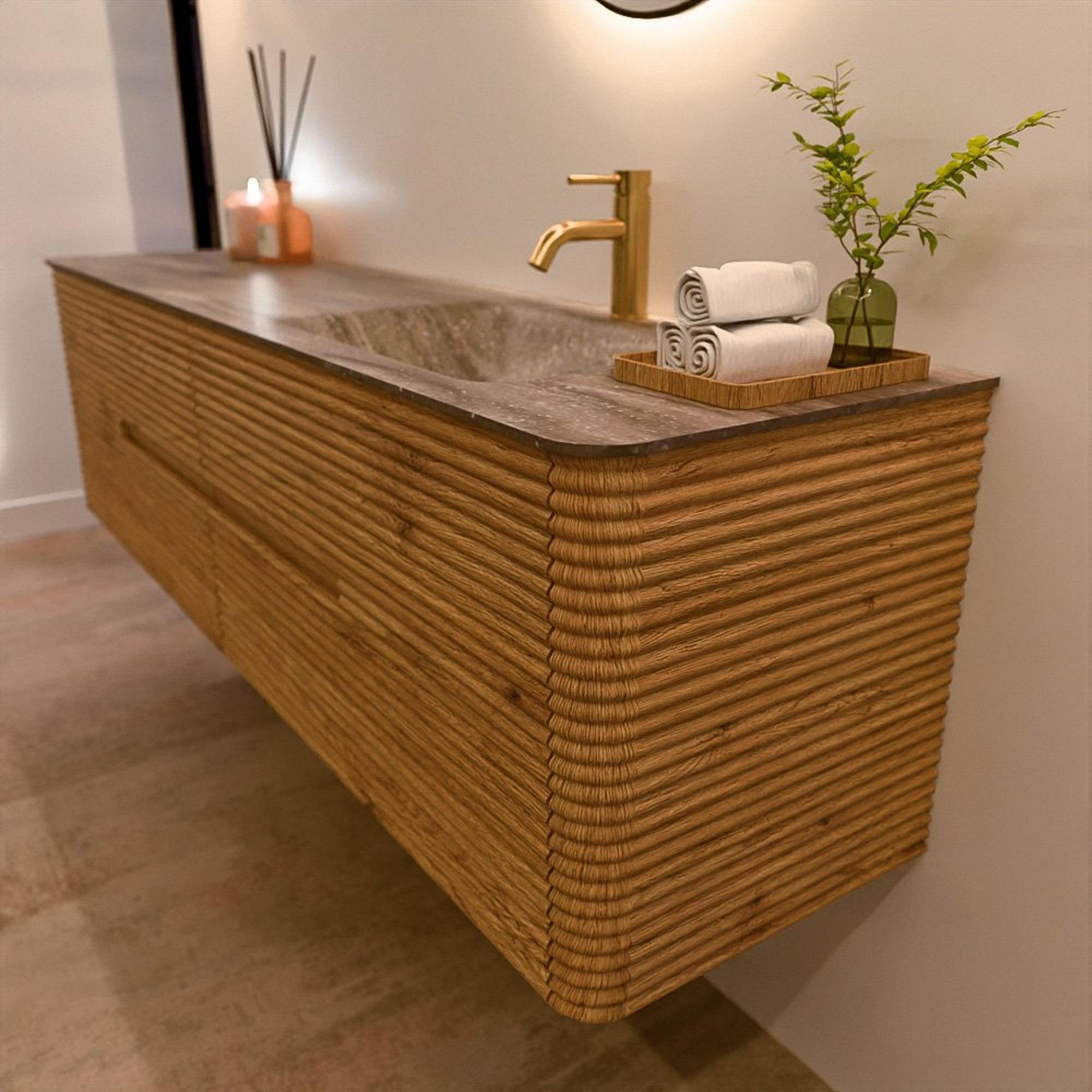 Le meuble de salle de bain CIRO-DLUX a été développé pour ceux qui choisissent un design moderne, des matériaux naturels et une fonctionnalité de haute qualité. Avec des dimensions allant de 70 cm à 190 cm, la gamme CIRO-DLUX s’intègre facilement aussi bien dans les salles de bain compactes que dans les grands espaces de design. Chaque meuble est une combinaison équilibrée d’esthétique, de savoir-faire et de qualité durable.