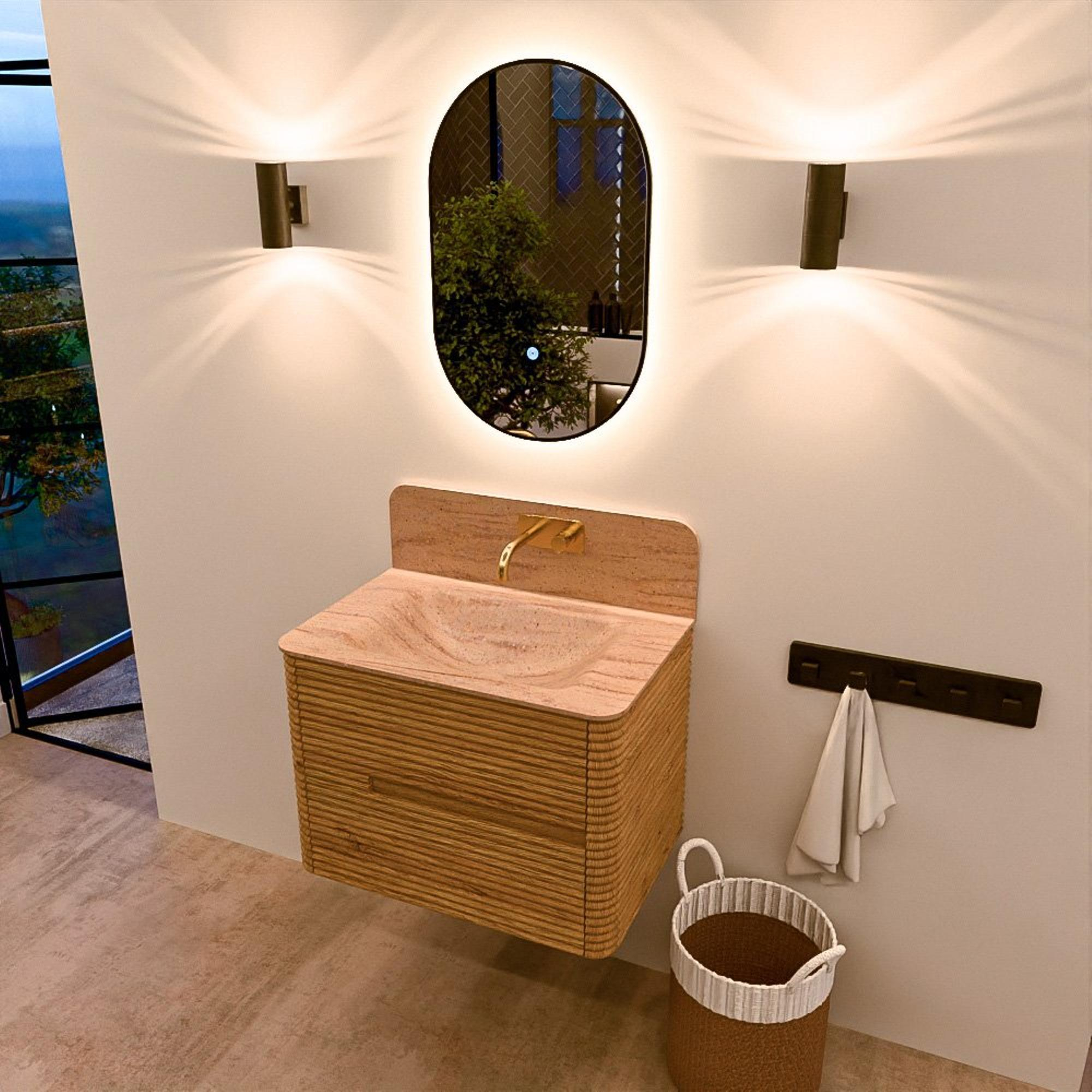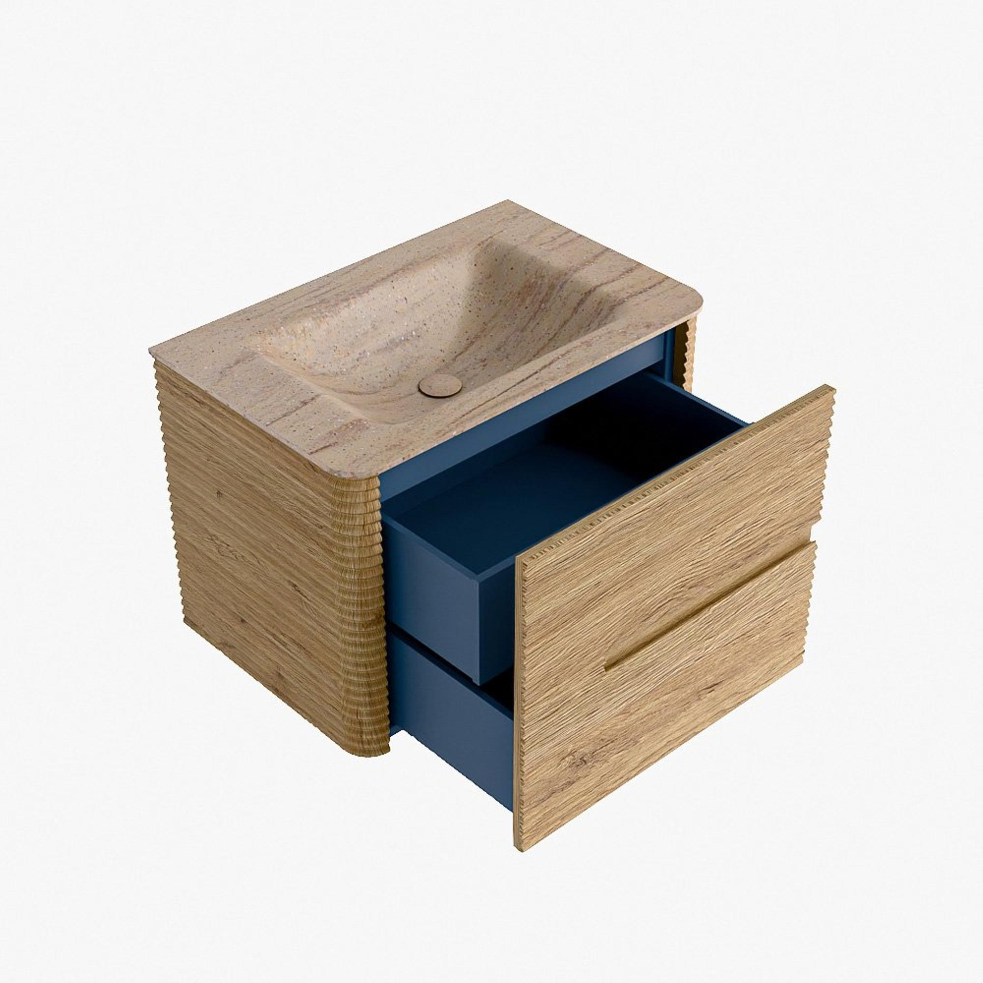 Mondiaz CIRO-DLUX Ensemble de meubles de salle de bains - 70x45x50cm - lavabo solid surface Saba - 1 vasque au milieu - sans trous de robinet - 2 tiroirs - Chêne