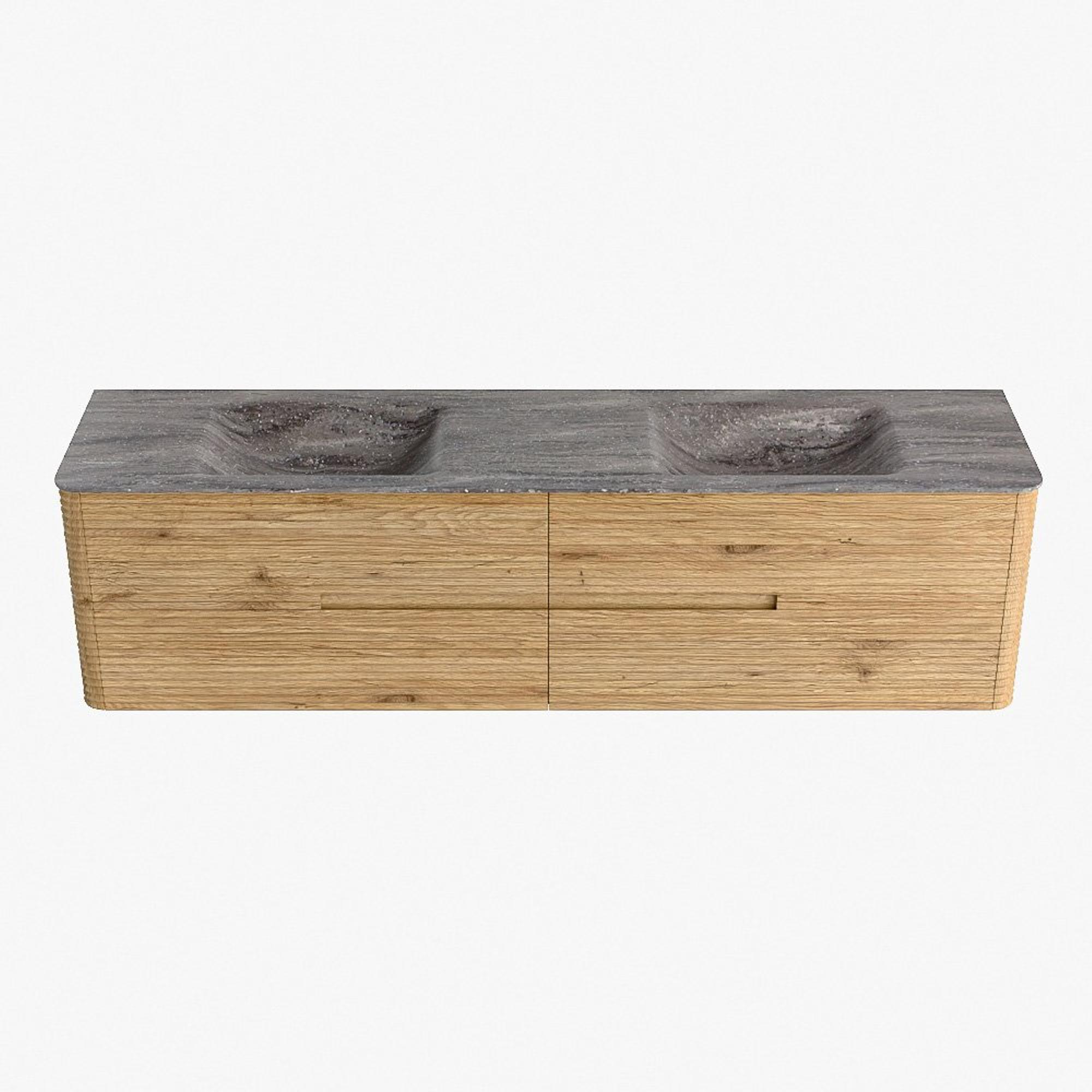 Mondiaz CIRO-DLUX Ensemble de meubles de salle de bains - 190x45x50cm - Plan-vasque solid surface Oza - 2 vasques double - sans trous de robinetterie - 4 tiroirs - Chêne