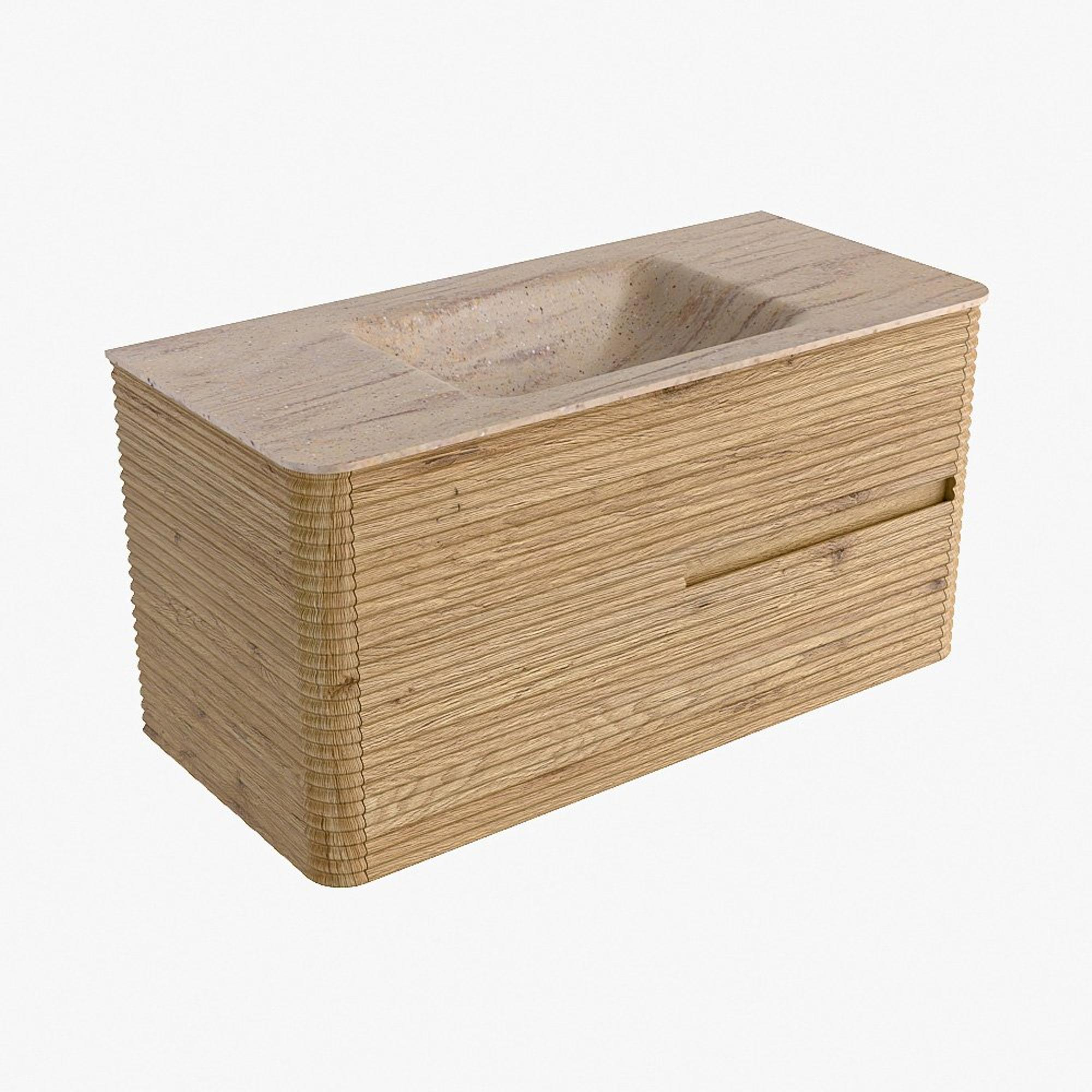 Mondiaz CIRO-DLUX Ensemble de meubles de salle de bains - 100x45x50cm - Plan vasque solid surface Saba - 1 vasque au centre - sans trous de robinet - 2 tiroirs - Chêne