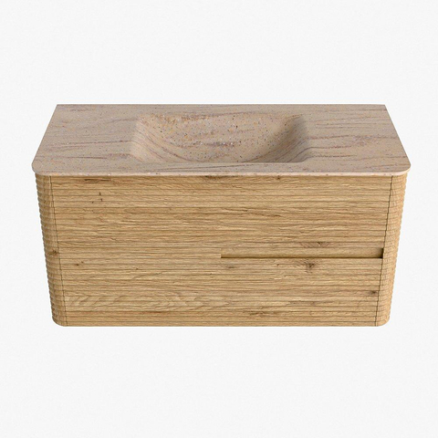 Mondiaz CIRO-DLUX Meuble de salle de bains - 100x45x50cm - Plan vasque Solid surface Saba - 1 lavabo au milieu - 1 trou de robinet - 2 tiroirs - Chêne
