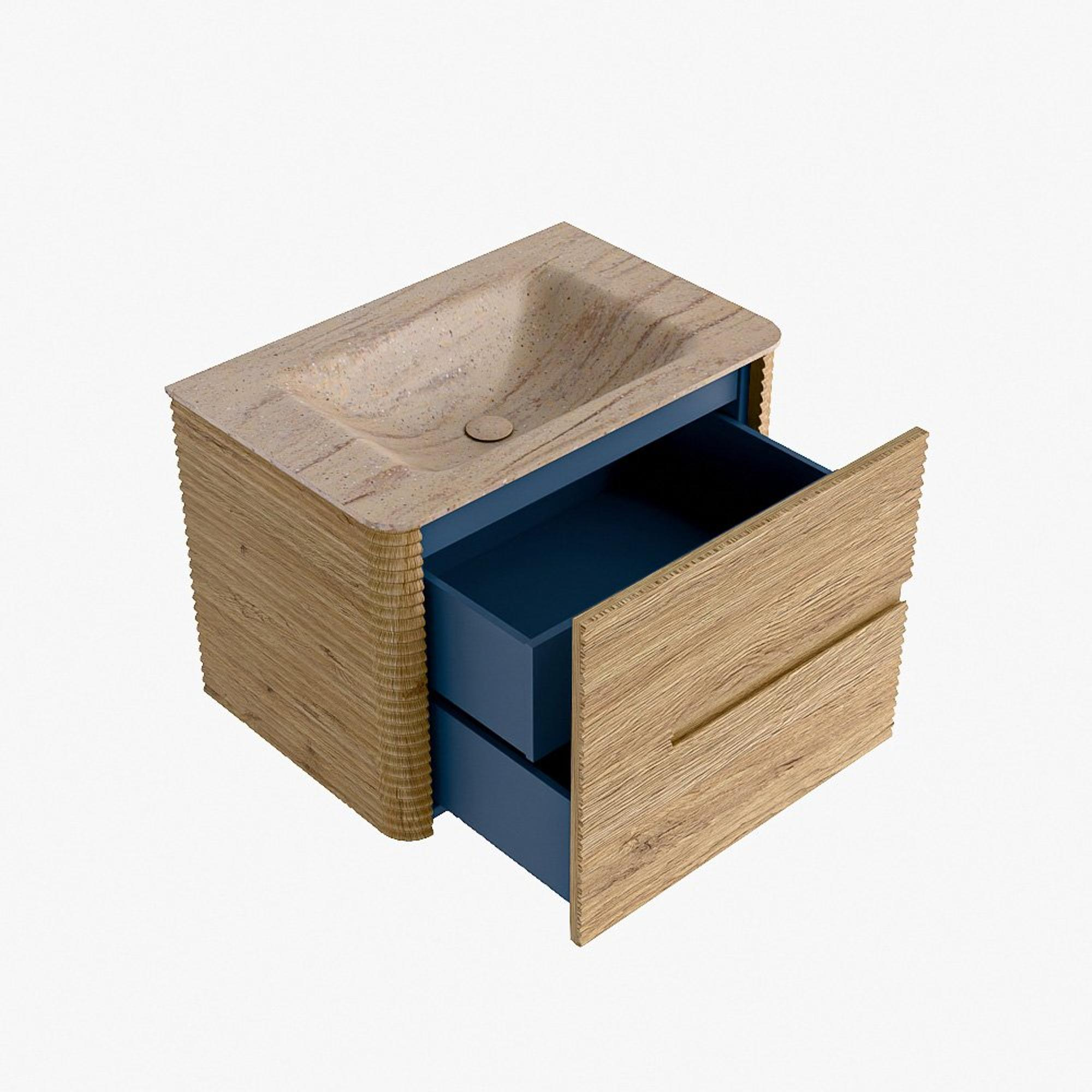 Mondiaz CIRO-DLUX Meuble de salle de bains - 70x45x50cm - Plan-vasque solid surface Saba - 1 vasque au milieu - 1 trou de robinetterie - 2 tiroirs - Chêne
