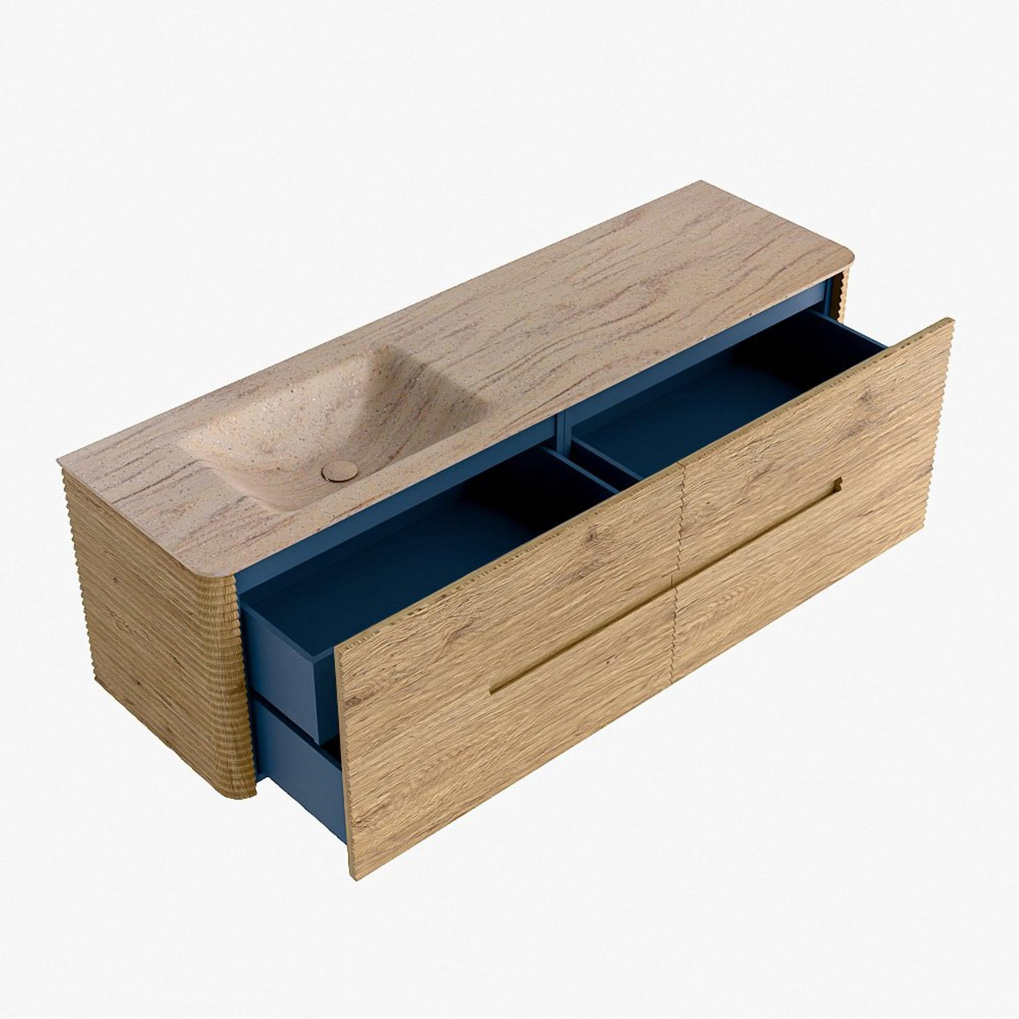 Mondiaz CIRO-DLUX Meuble de salle de bains - 160x45x50cm - Vasque en solid surface Saba - 1 lavabo à gauche - sans trous de robinetterie - 4 tiroirs - Chêne
