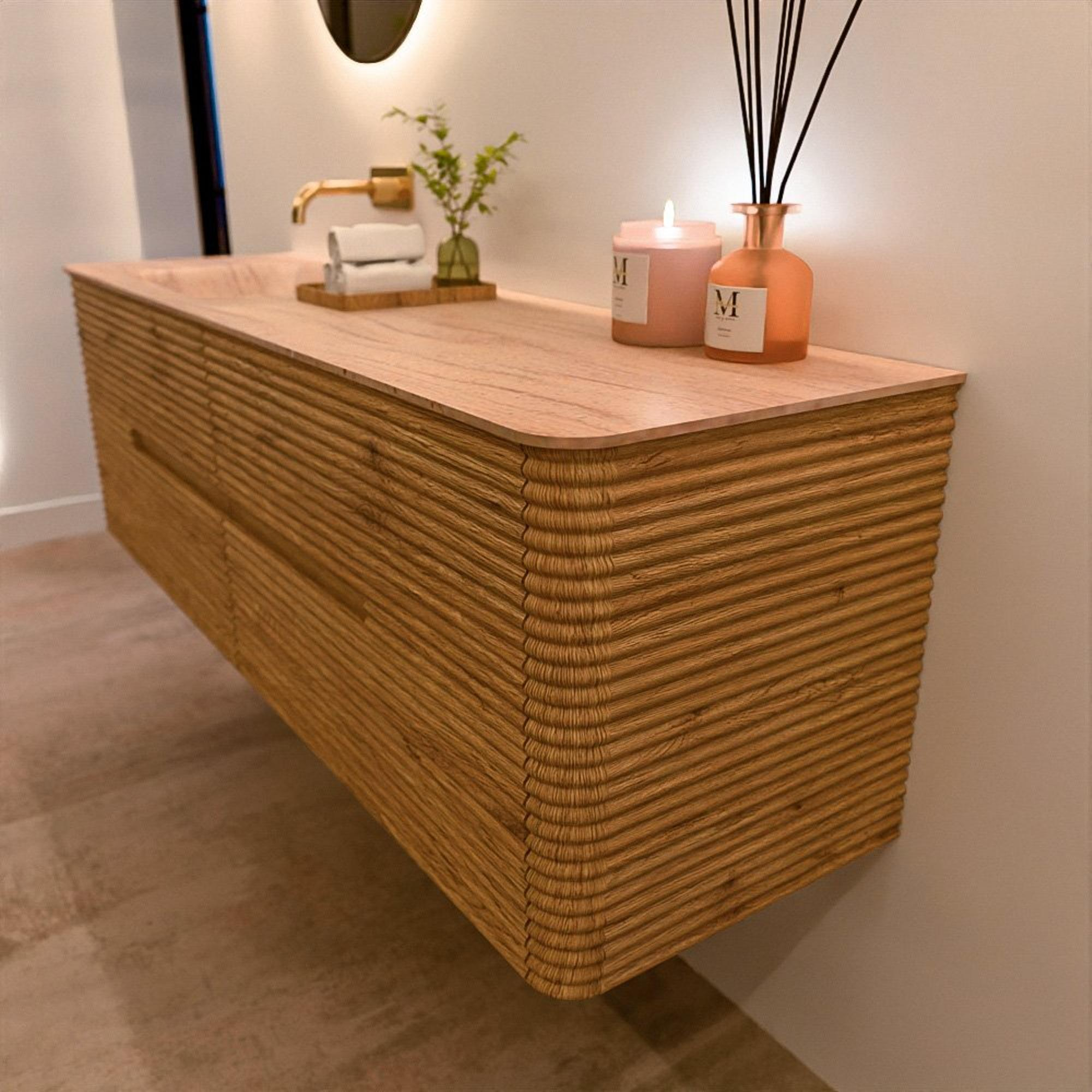 Le meuble de salle de bain CIRO-DLUX a été développé pour ceux qui choisissent un design moderne, des matériaux naturels et une fonctionnalité de haute qualité. Avec des dimensions allant de 70 cm à 190 cm, la gamme CIRO-DLUX s’intègre facilement aussi bien dans les salles de bain compactes que dans les grands espaces de design. Chaque meuble est une combinaison équilibrée d’esthétique, de savoir-faire et de qualité durable.