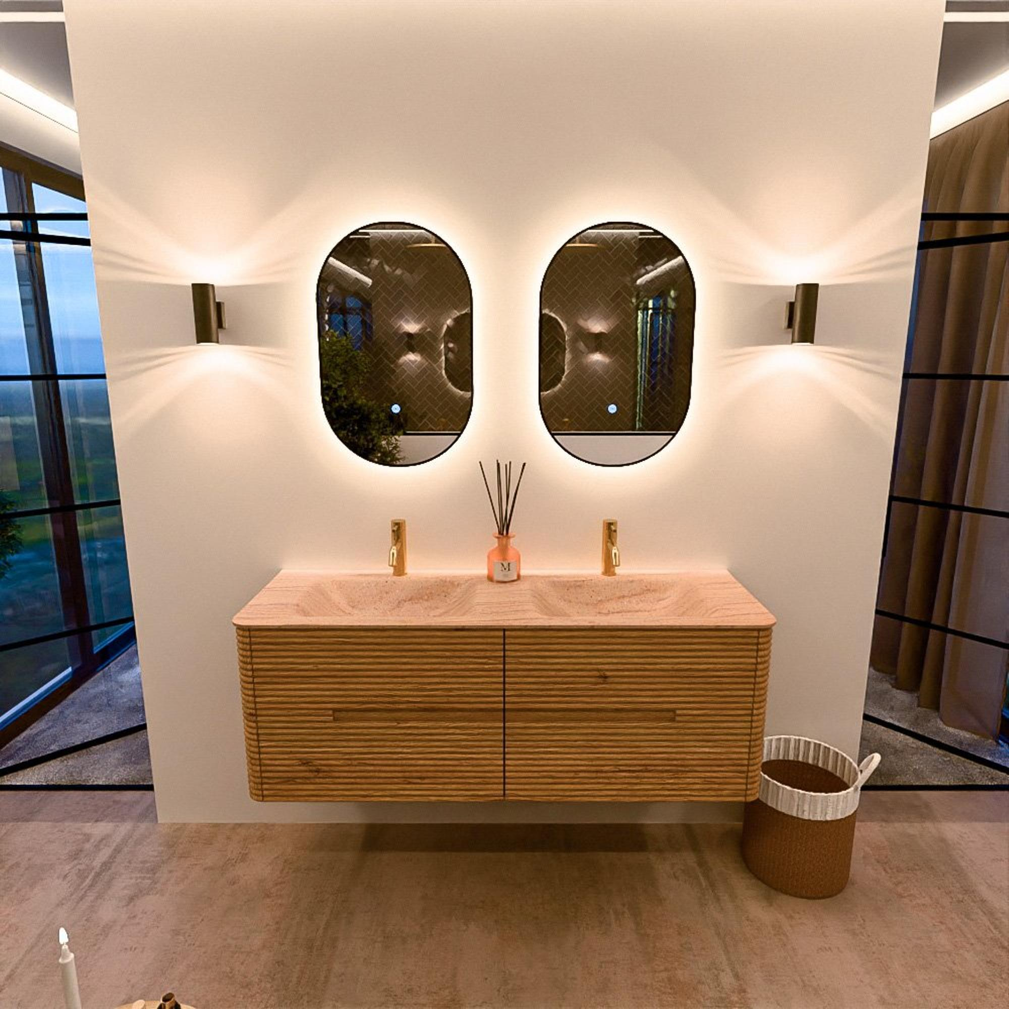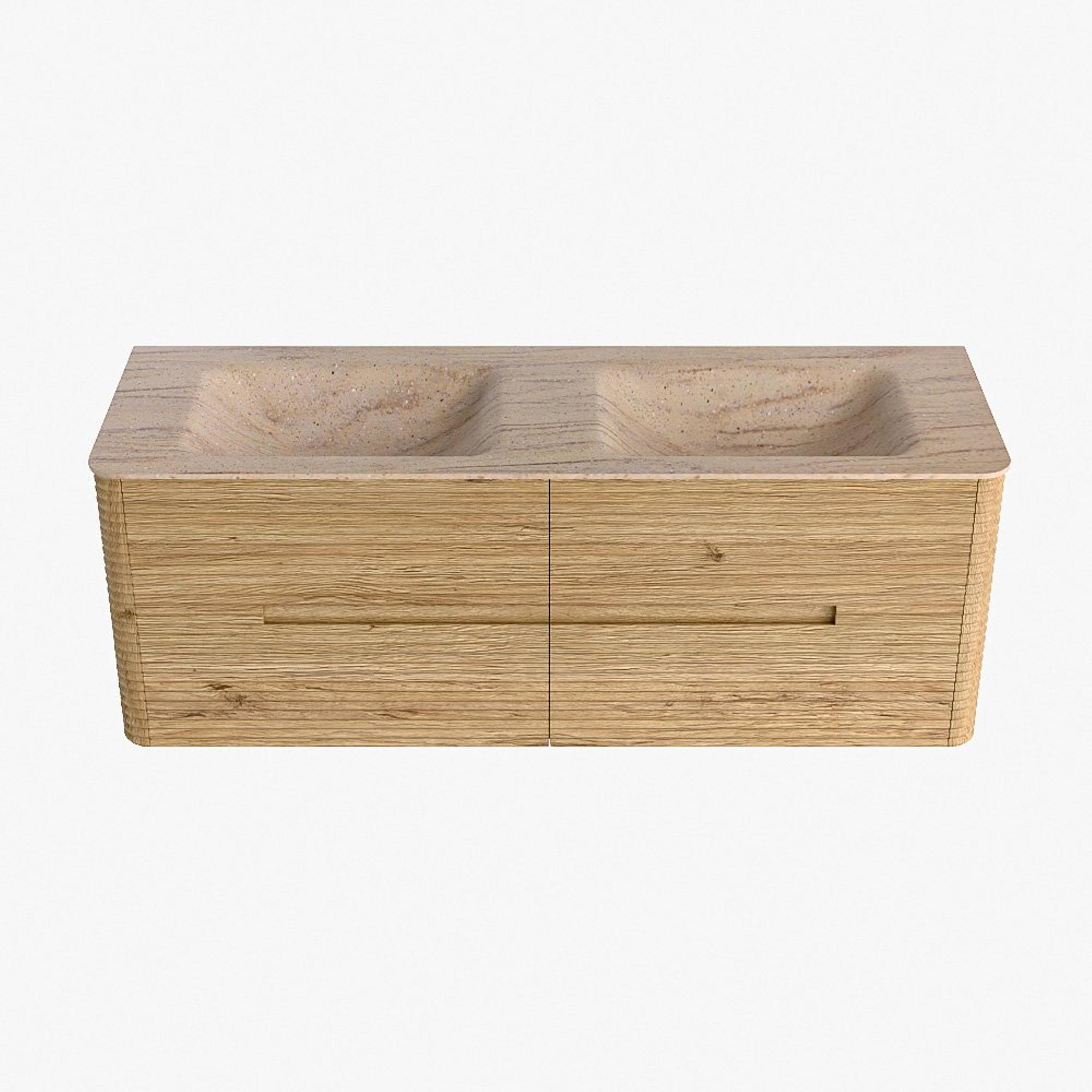 Mondiaz CIRO-DLUX Ensemble de meubles de salle de bains - 140x45x50cm - Plan vasque solid surface Saba - 2 vasques double - 2 trous de robinetterie - 4 tiroirs - Chêne