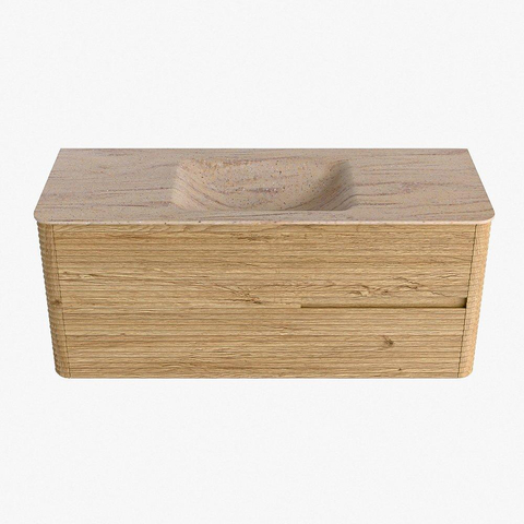 Mondiaz CIRO-DLUX Ensemble de meubles de salle de bains - 120x45x50cm - Plan vasque solid surface Saba - 1 vasque au milieu - sans trous de robinetterie - 2 tiroirs - Chêne