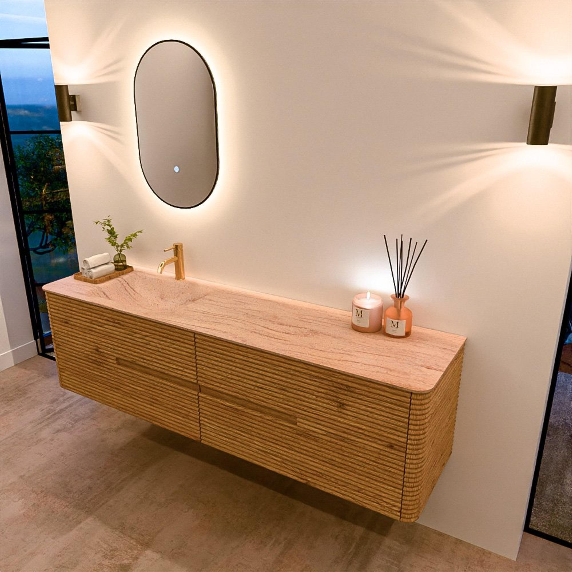 Mondiaz CIRO-DLUX Meuble de salle de bains - 180x45x50cm - Plan-vasque Solid surface Saba - 1 vasque à gauche - 1 trou de robinetterie - 4 tiroirs - Chêne