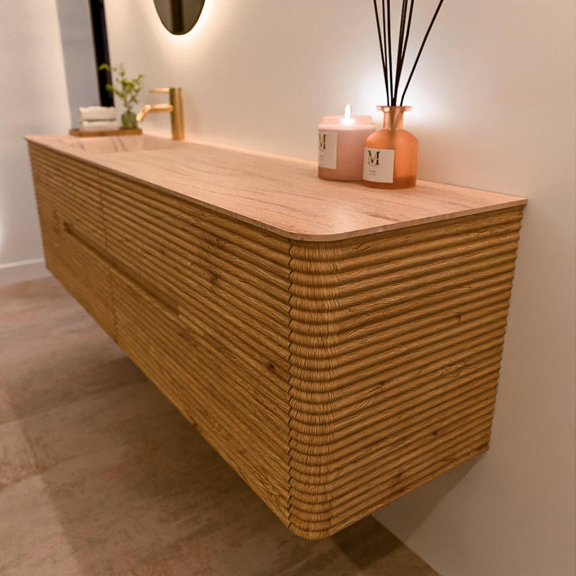 Le meuble de salle de bain CIRO-DLUX a été développé pour ceux qui choisissent un design moderne, des matériaux naturels et une fonctionnalité de haute qualité. Avec des dimensions allant de 70 cm à 190 cm, la gamme CIRO-DLUX s’intègre facilement aussi bien dans les salles de bain compactes que dans les grands espaces de design. Chaque meuble est une combinaison équilibrée d’esthétique, de savoir-faire et de qualité durable.