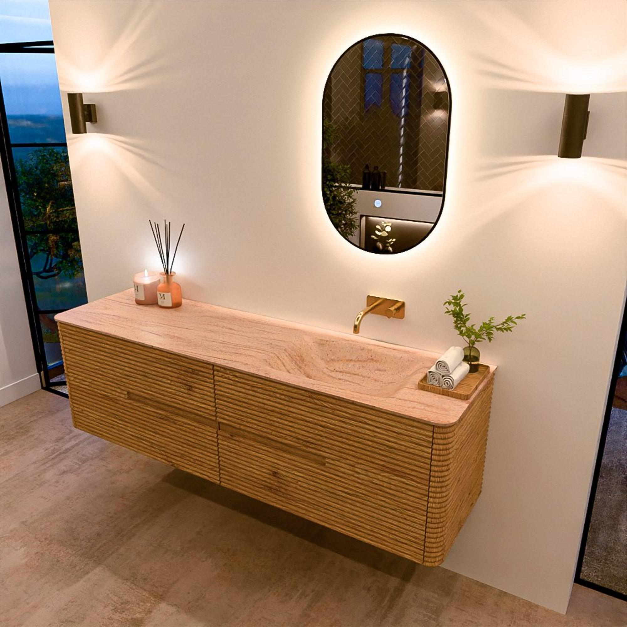 Mondiaz CIRO-DLUX Ensemble de meubles de salle de bains - 170x45x50cm - vasque Solid Surface Saba - 1 bassin à droite - sans trous de robinet - 4 tiroirs - Chêne