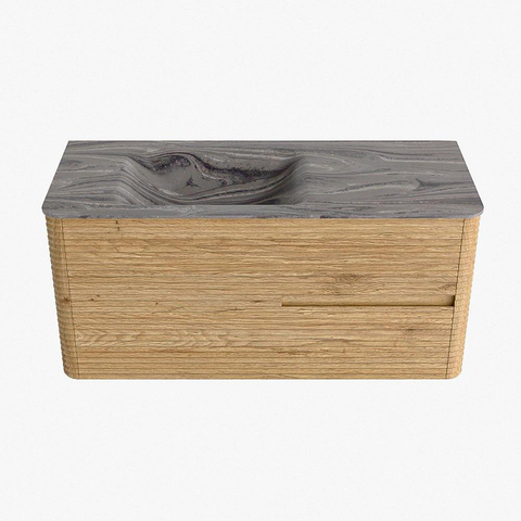 Mondiaz CIRO-DLUX Meuble de salle de bains - 110x45x50cm - Plan vasque solid surface Sombra - 1 vasque à gauche - 1 trou de robinet - 2 tiroirs - Chêne