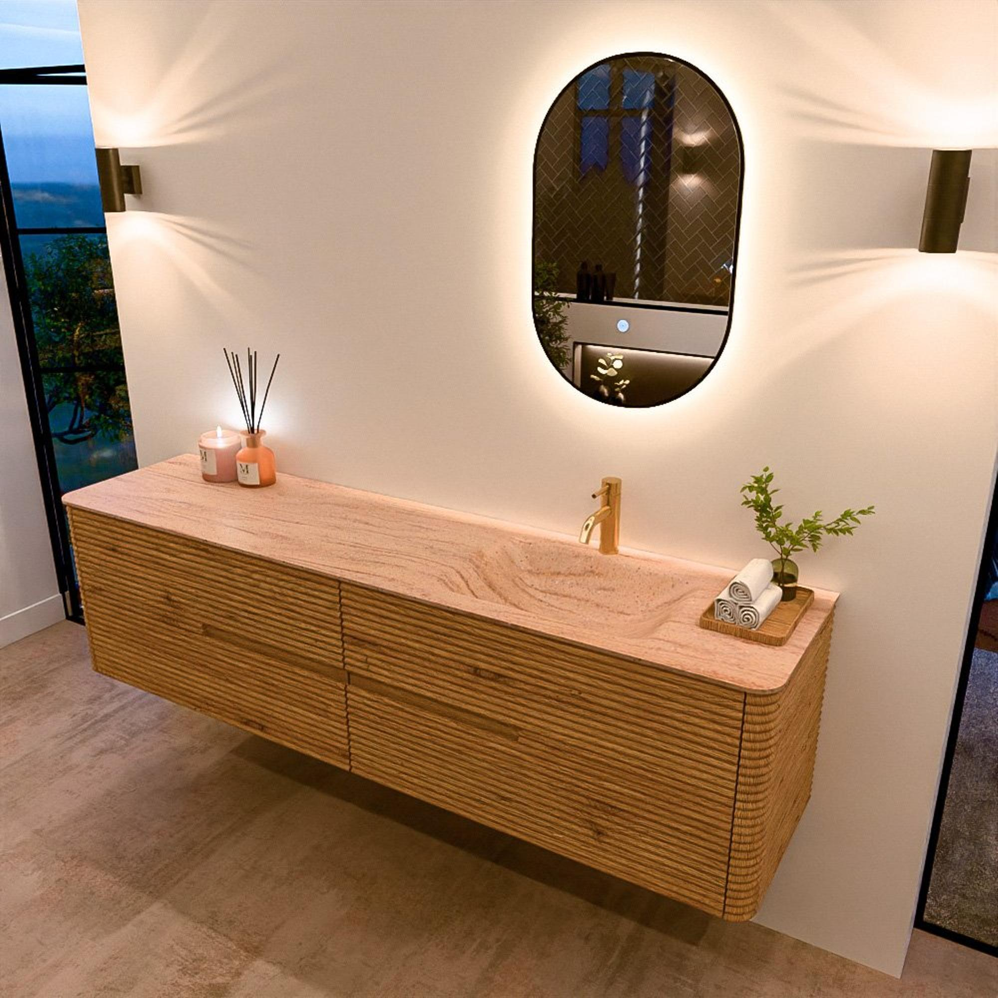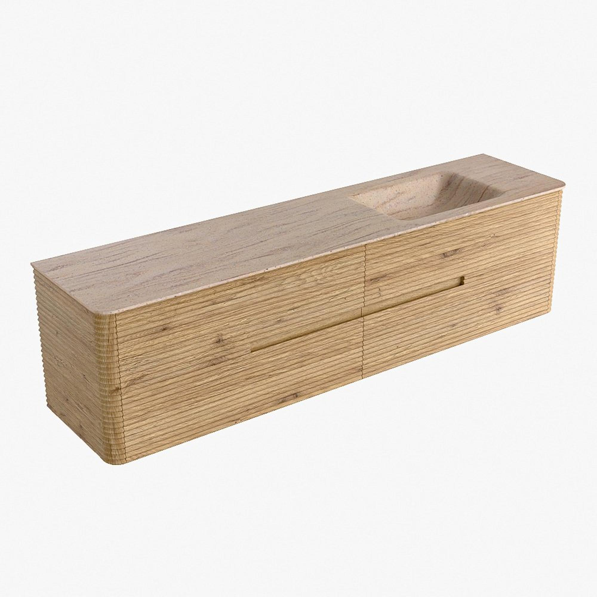 Mondiaz CIRO-DLUX Ensemble de meubles de salle de bains - 190x45x50cm - Plan-vasque Solid surface Saba - 1 bassin à droite - 1 trou de robinet - 4 tiroirs - Chêne