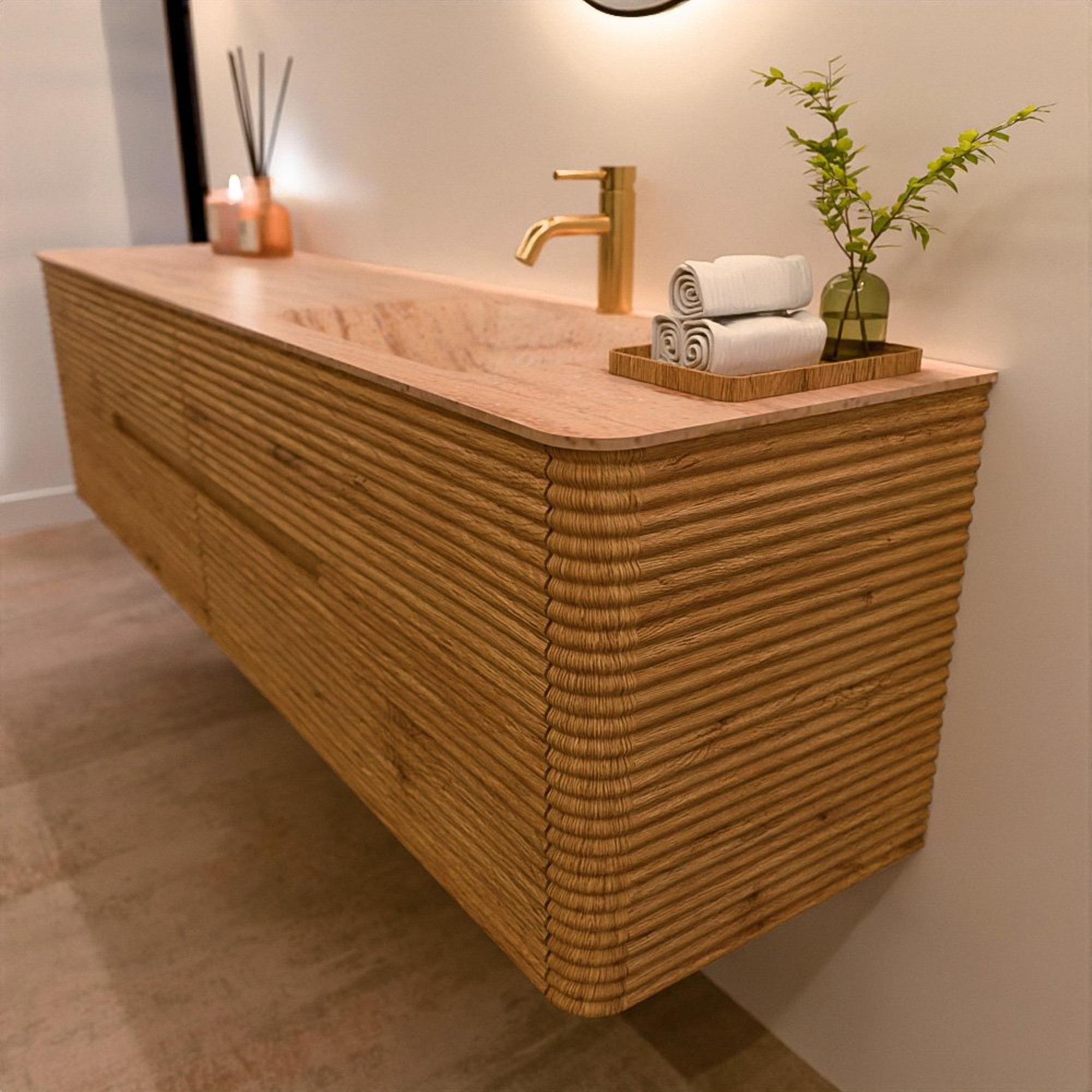 Le meuble de salle de bain CIRO-DLUX a été développé pour ceux qui choisissent un design moderne, des matériaux naturels et une fonctionnalité de haute qualité. Avec des dimensions allant de 70 cm à 190 cm, la gamme CIRO-DLUX s’intègre facilement aussi bien dans les salles de bain compactes que dans les grands espaces de design. Chaque meuble est une combinaison équilibrée d’esthétique, de savoir-faire et de qualité durable.