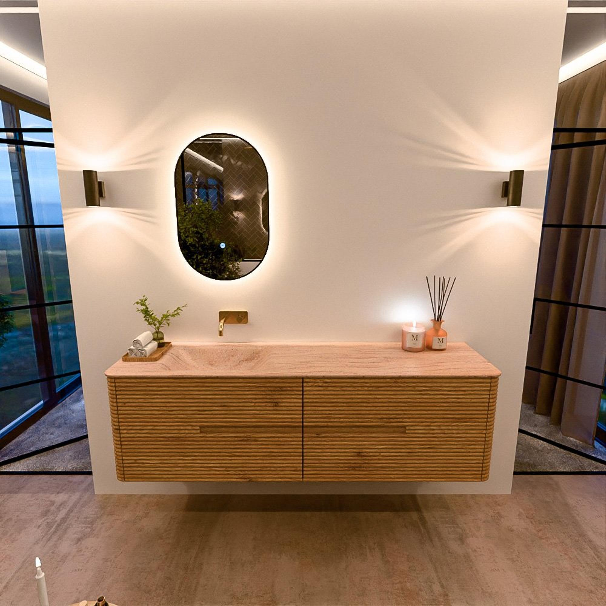 Mondiaz CIRO-DLUX Meuble de salle de bains - 170x45x50cm - lavabo solid surface Saba - 1 vasque à gauche - sans trous de robinetterie - 4 tiroirs - chêne