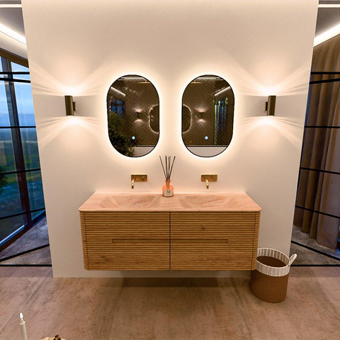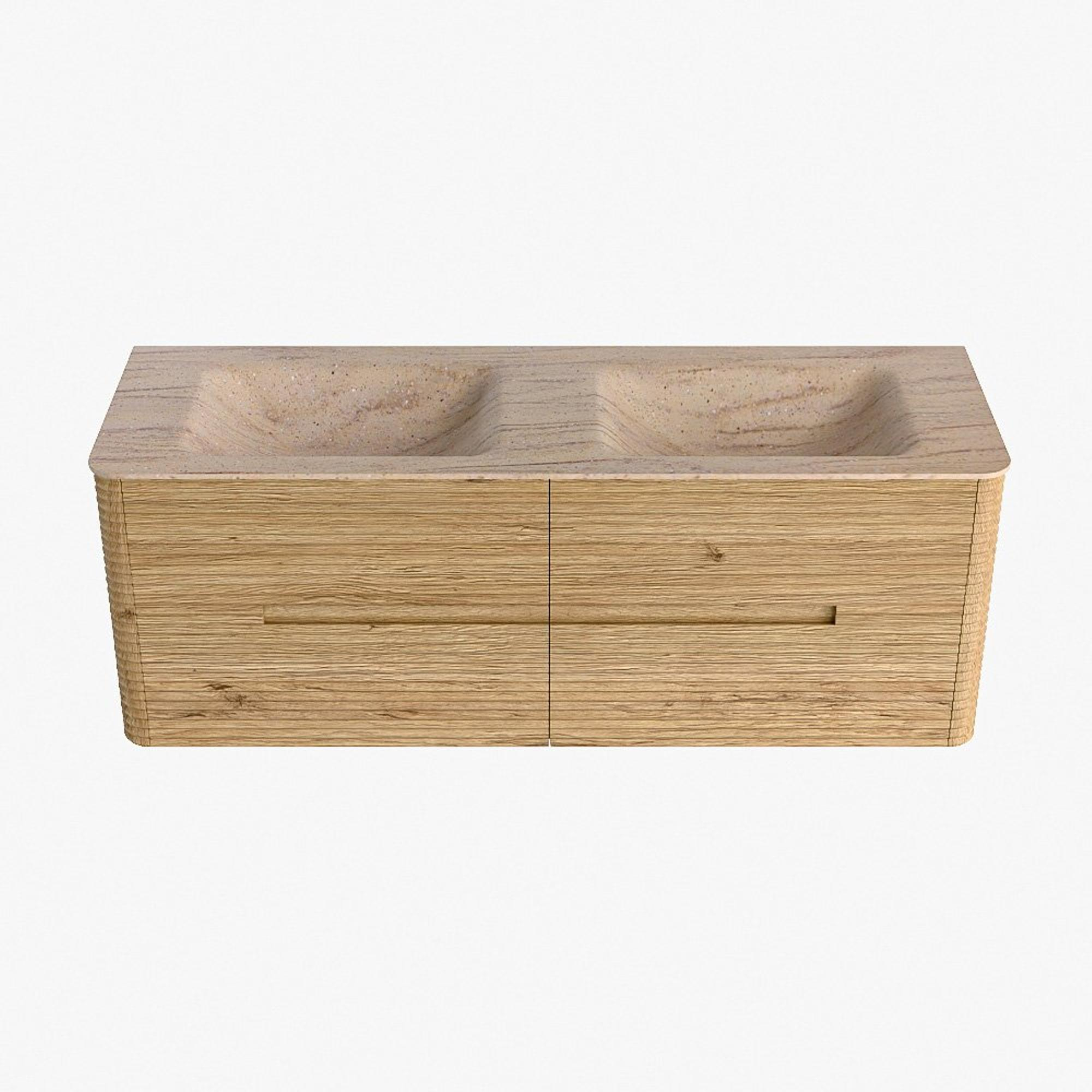Mondiaz CIRO-DLUX Ensemble de meubles de salle de bains - 140x45x50cm - lavabo solid surface Saba - 2 vasques double - sans trous de robinet - 4 tiroirs - Chêne