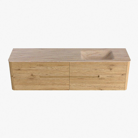 Mondiaz CIRO-DLUX Ensemble de meubles de salle de bains - 180x45x50cm - plan vasque Solid surface Saba - 1 vasque à droite - sans trous de robinetterie - 4 tiroirs - Chêne