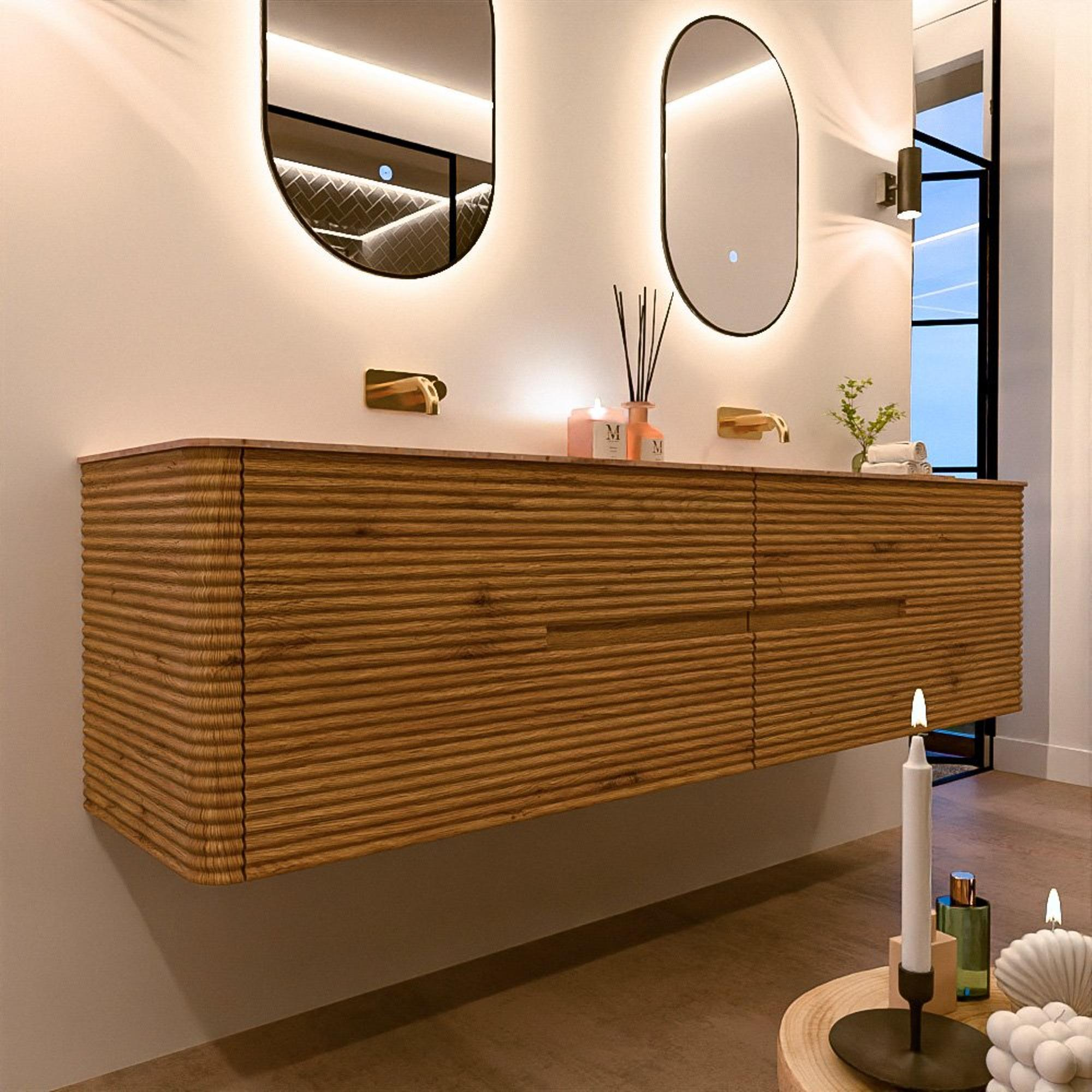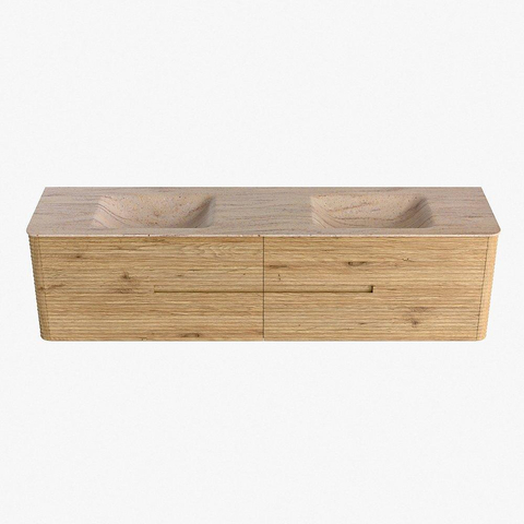 Mondiaz CIRO-DLUX Ensemble de meubles de salle de bains - 190x45x50cm - vasque solid surface Saba - 2 bacs Double - sans trous de robinet - 4 tiroirs - Chêne